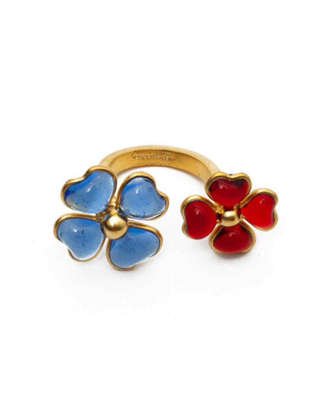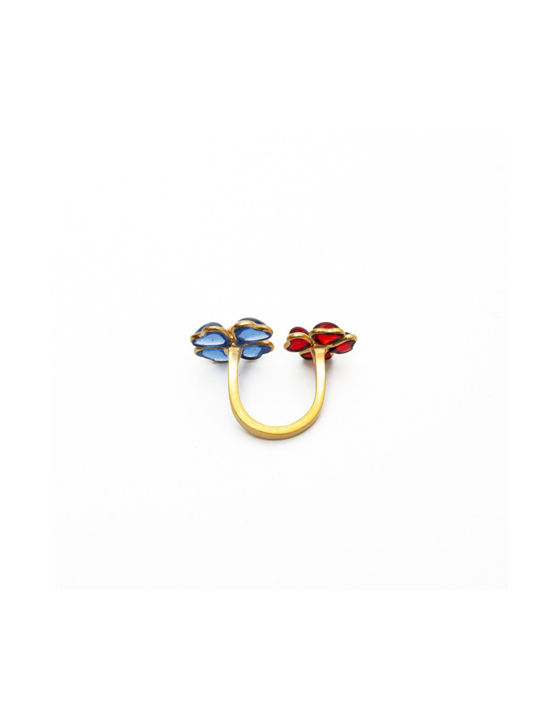 MARGUERITE DE VALOIS ruby and sapphire molten glass flower ring