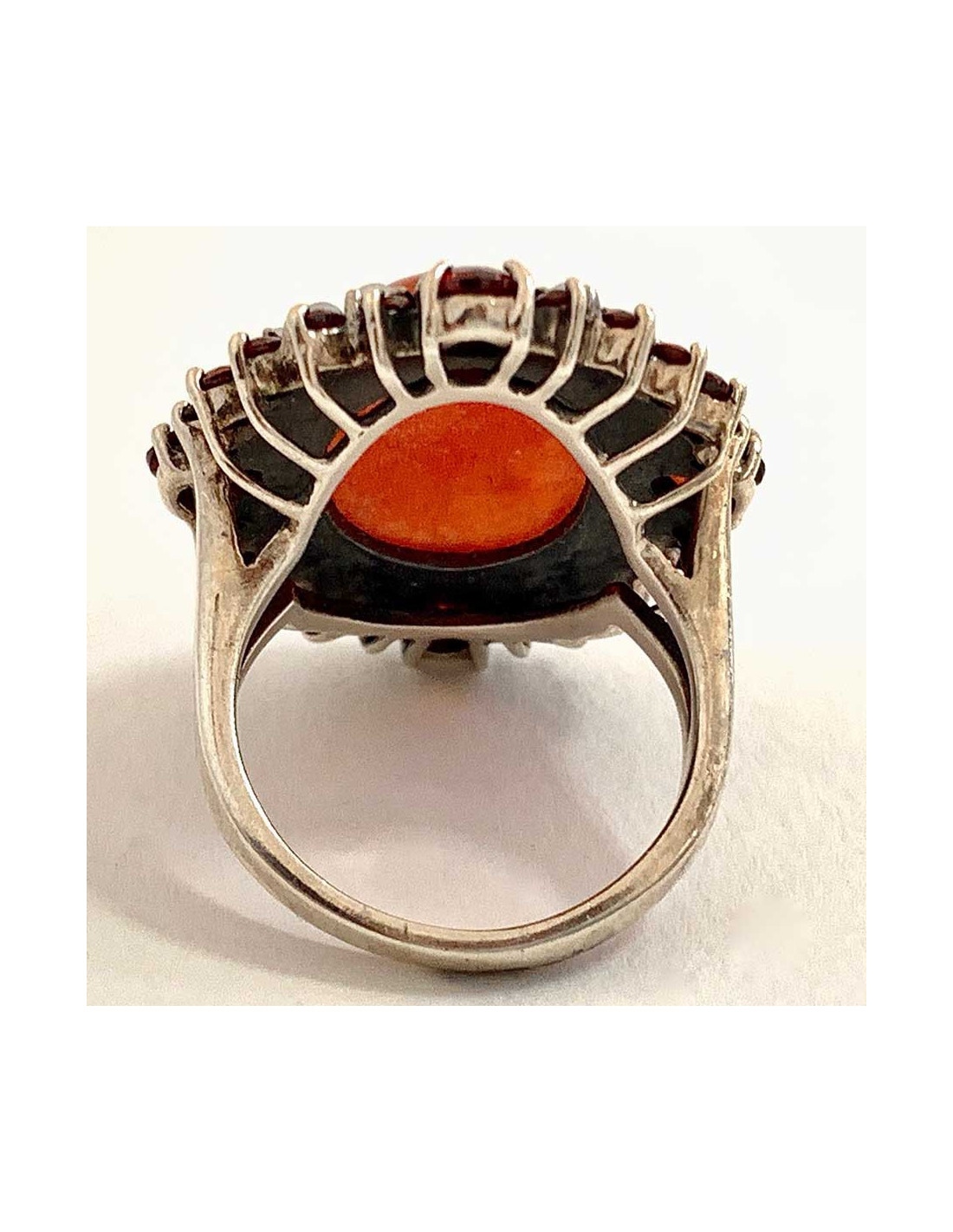 Antique orange cornelian and rhinestones ring