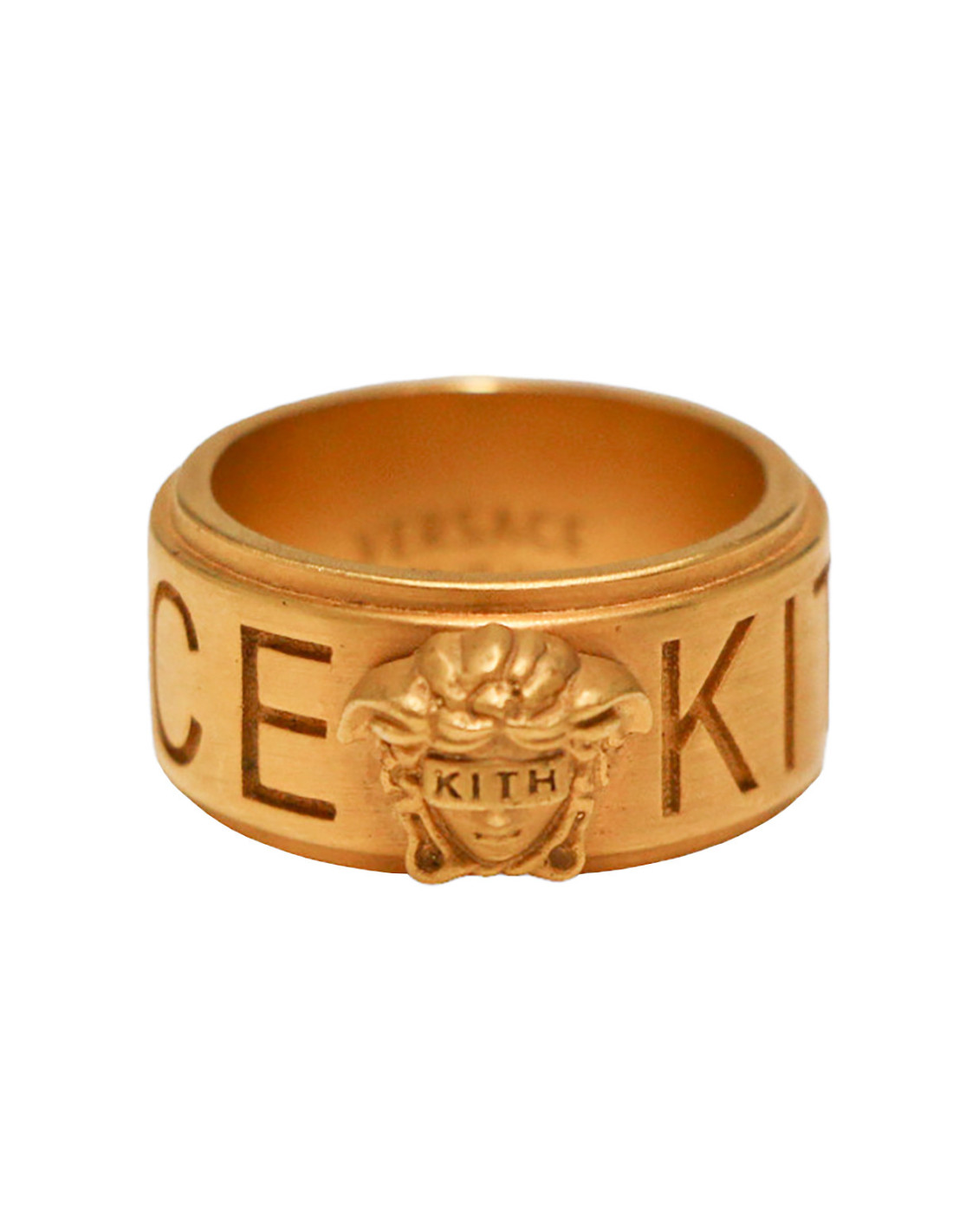 Details : rare ring, limited edition Kith x Versace (2019). Iconic Medusa head, symbol of Versace, wearing a Kith headband.
