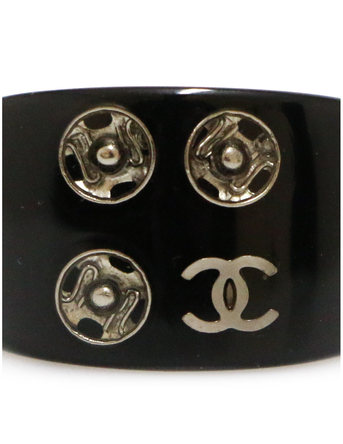 Black CHANEL ring silver pressure inclusions