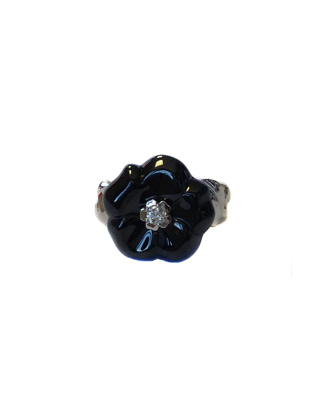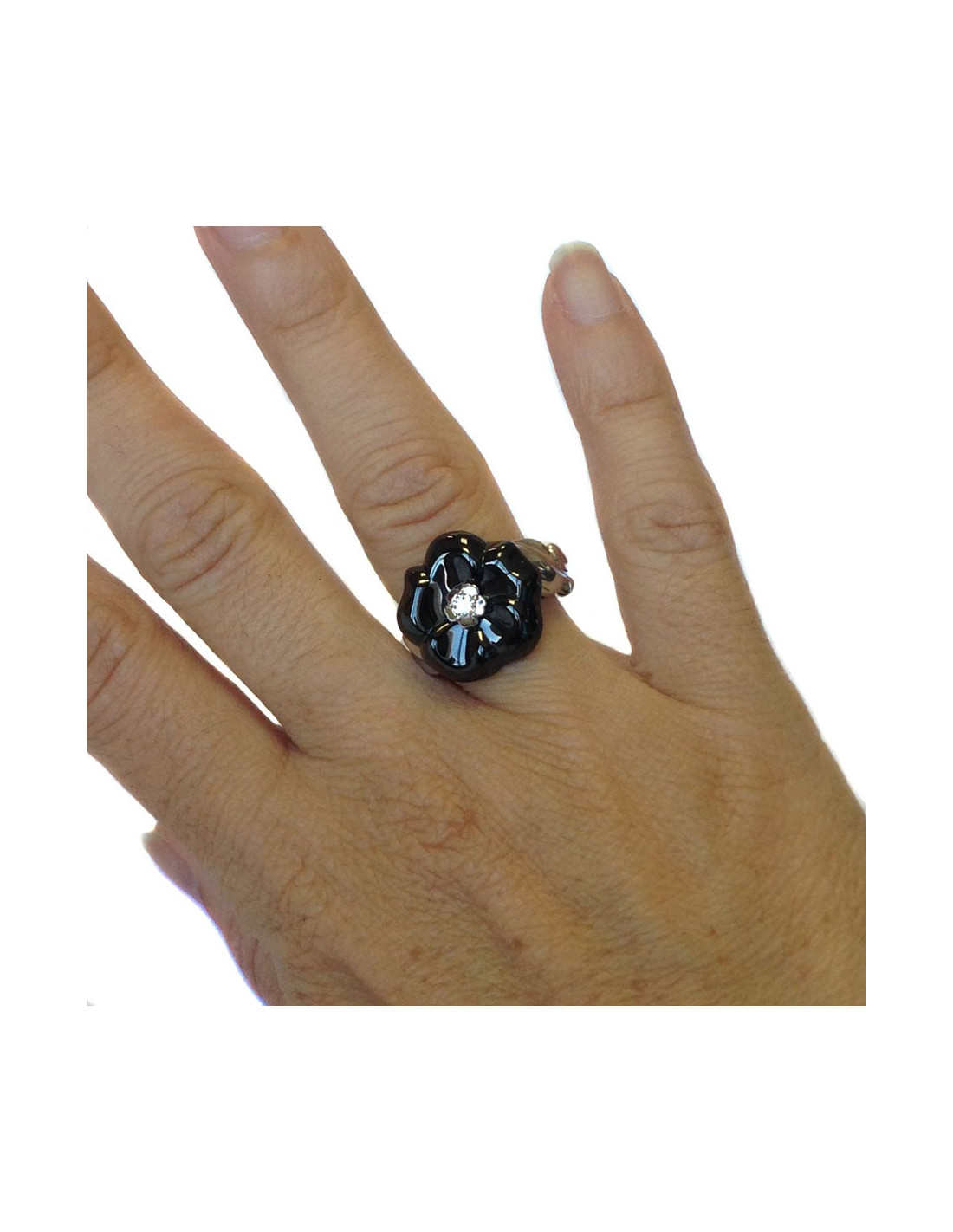 2015 very nice ring home CHANEL, T54 Camellia collection. Gold White 18-carat, diamond and Black ceramic. The Camellia is set with a brilliant cut diamond. Average ring model.