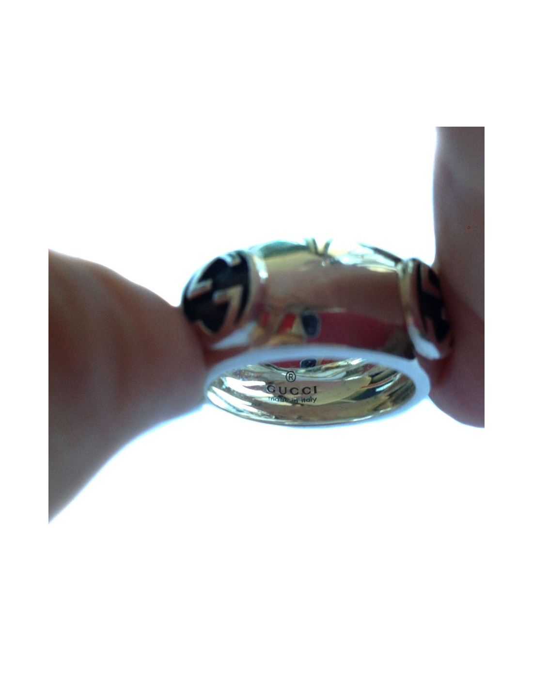 Very pretty ring Gucci, in 925 Silver ornate logos "GG" on each side. In very good condition.
