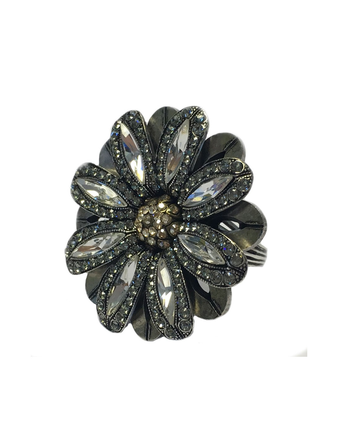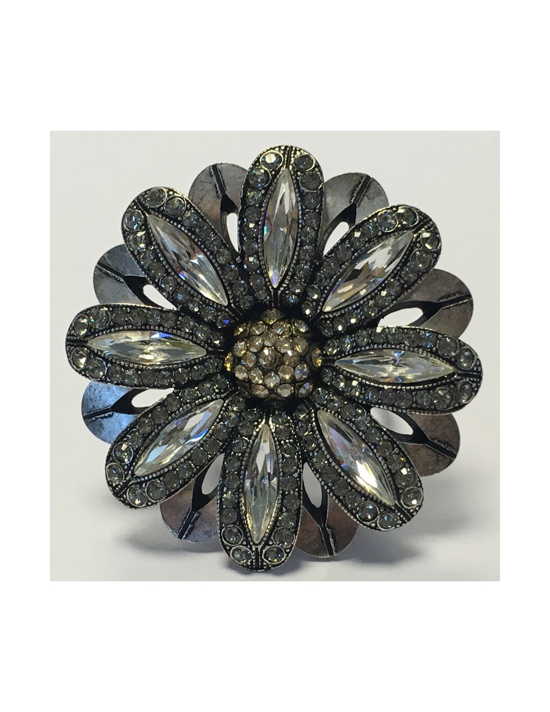 Very nice marguerite LANVIN in blackened silver metal and white and gold rhinestone ring. Never worn. Lozenge of the brand presents.