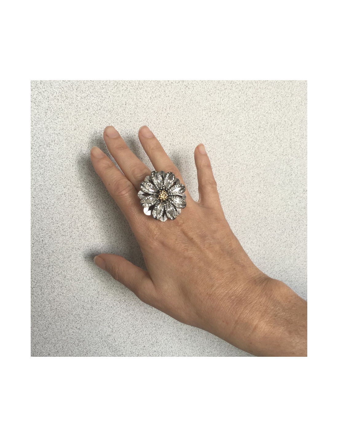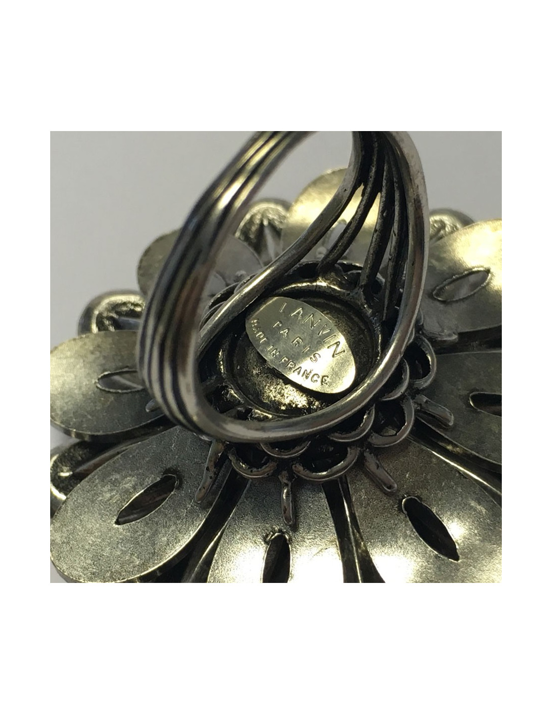Ring Marguerite LANVIN T55 silver metal and rhinestones