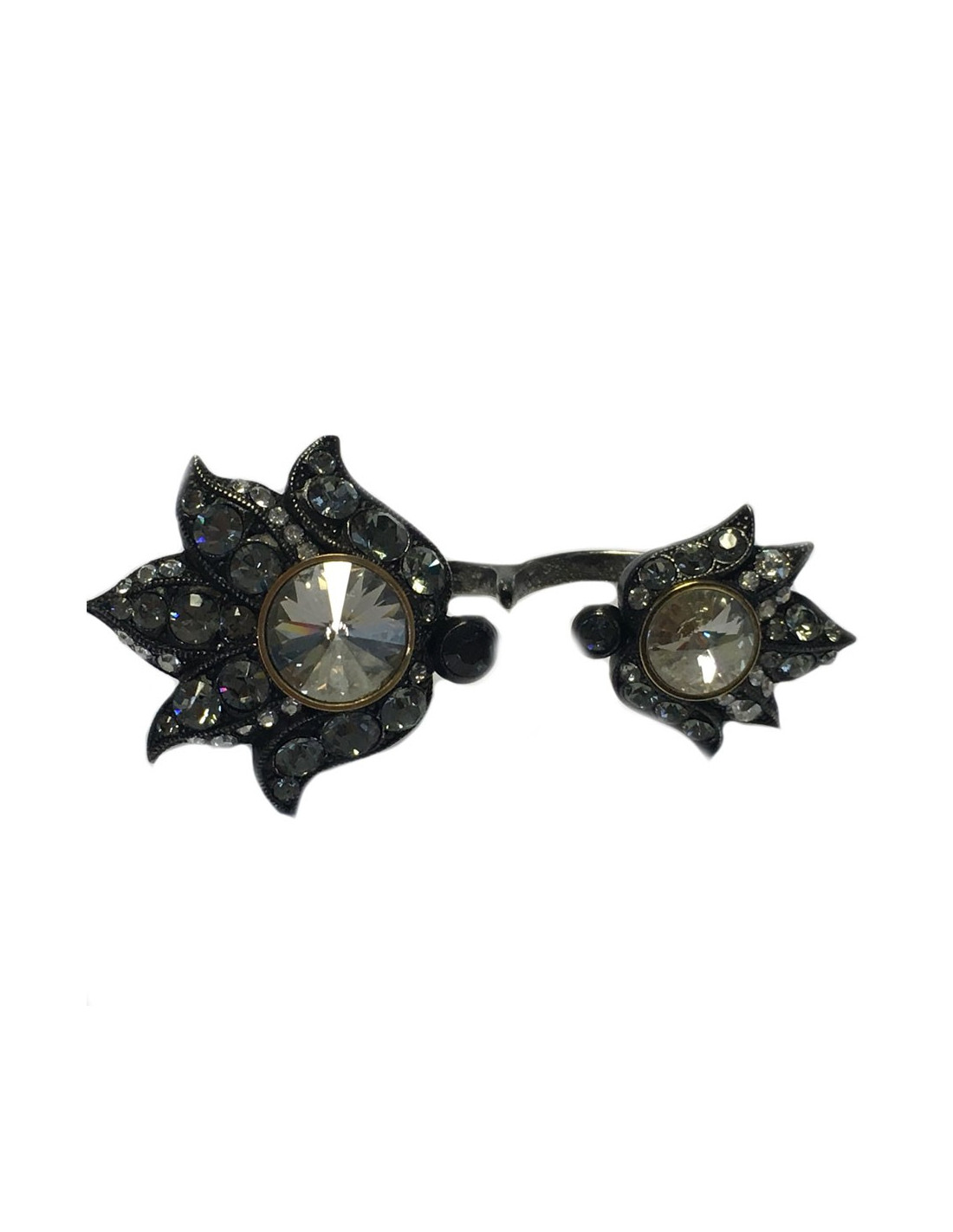 LANVIN 2 fingers in ruthenium and rhinestone ring