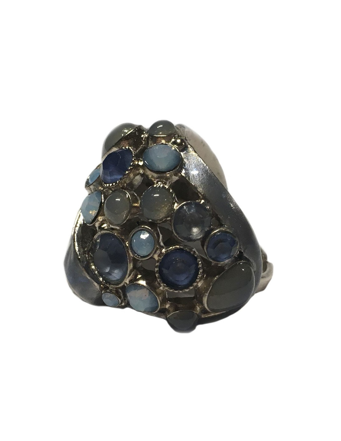 Ring CHANEL couture (unsigned, parade ring) silver metal, stones in various shades of blue. Metal silver and covered with iridescent blue. never worn.