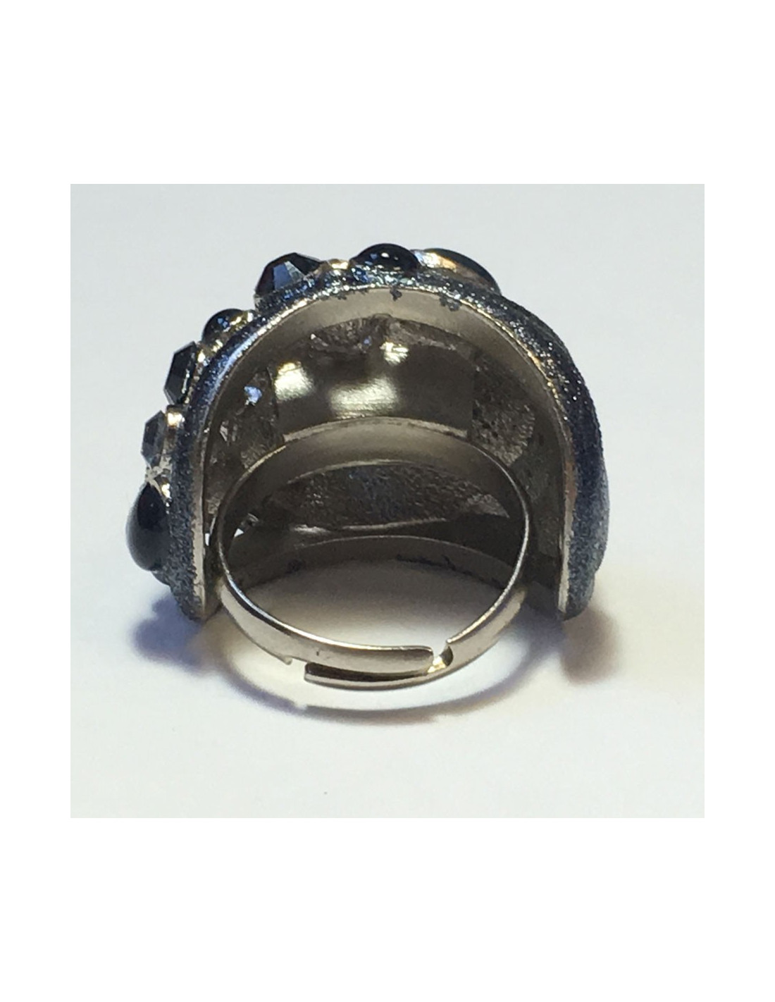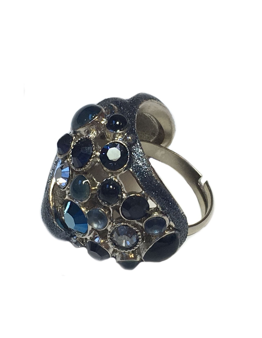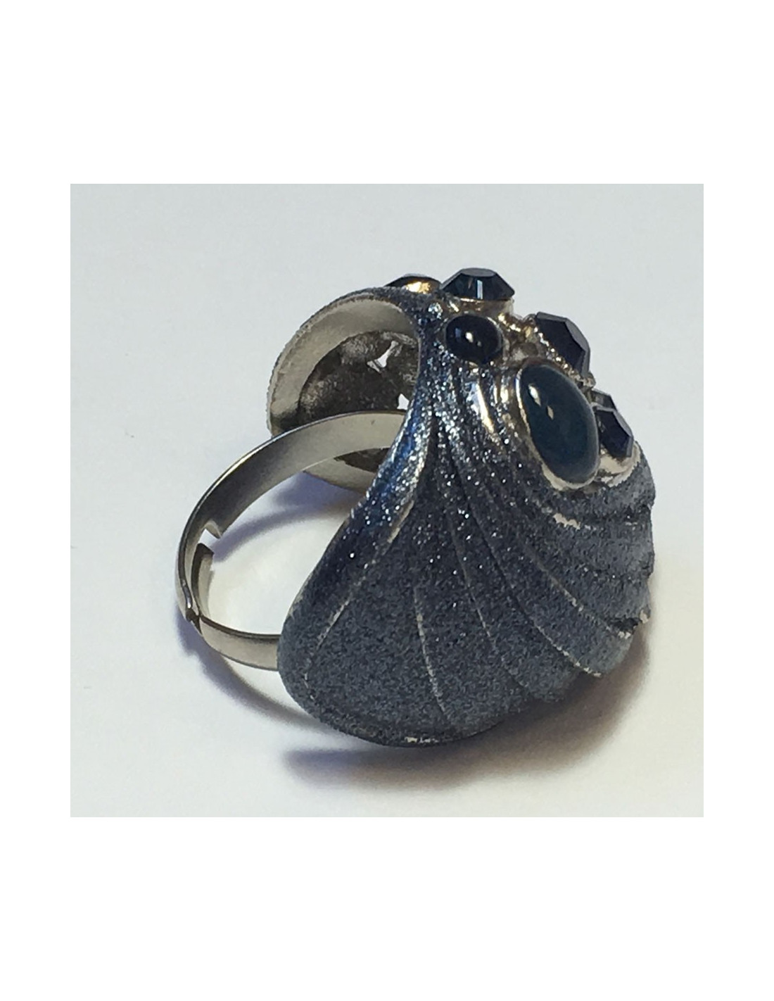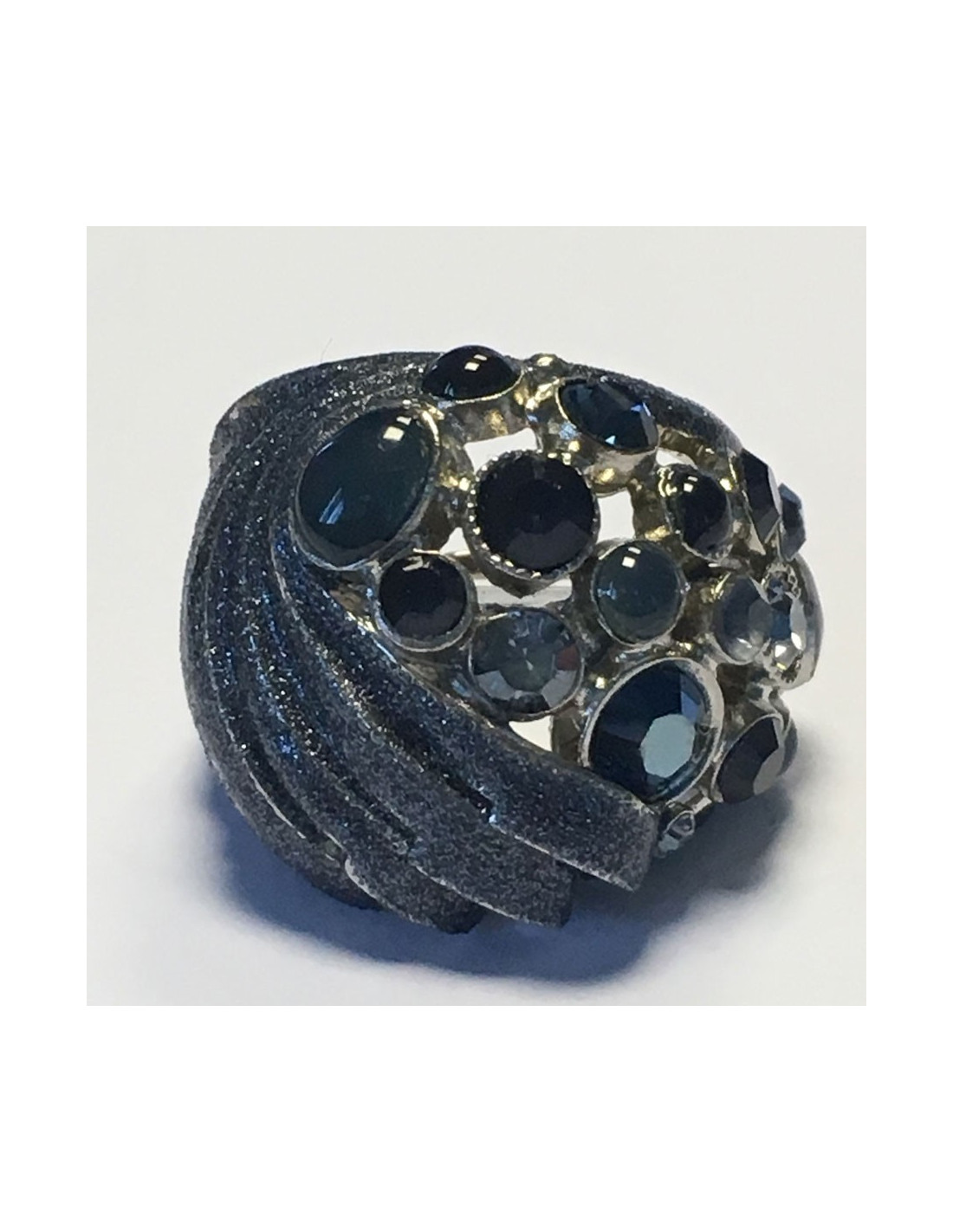 Ring CHANEL couture T51 metal silver rhinestones and blue stones