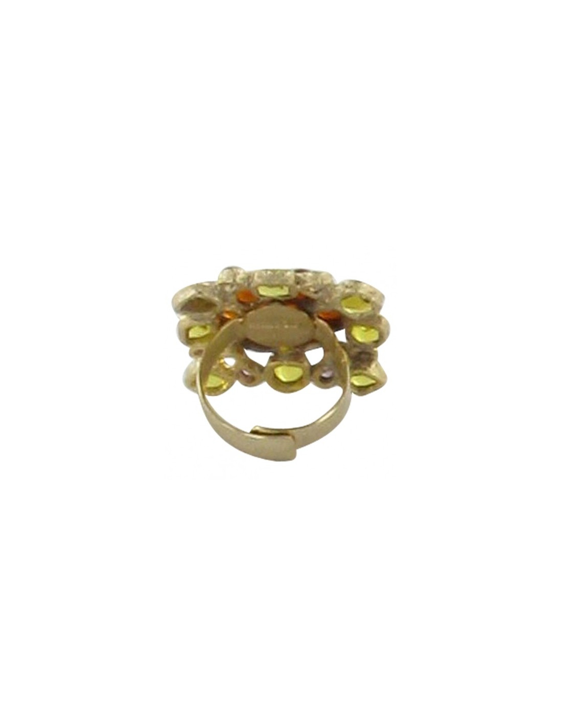 Série limitée bague byzantine Marguerite de Valois en pâte de verre (topaze claire & foncée/améthyste) et métal doré à l'or fin, anneau réglable.