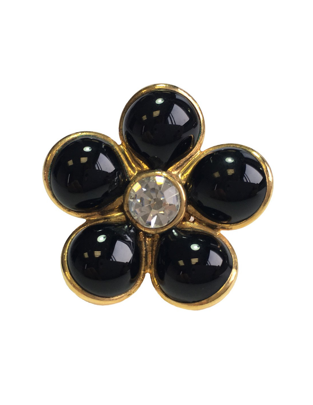 MARGUERITE DE VALOIS Flower Ring in Black Molten Glass with a Rhinestone