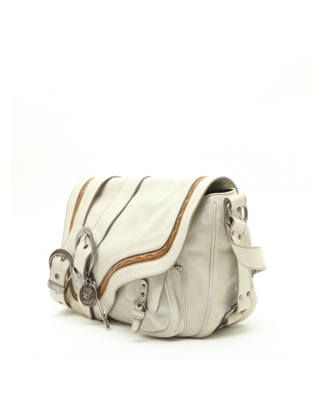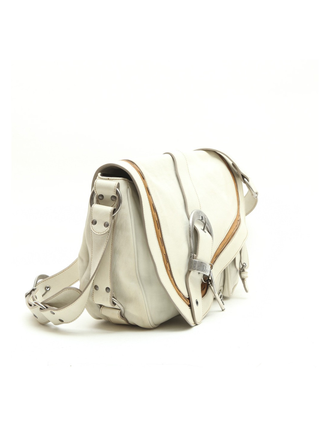 CHRISTIAN DIOR Saddle bag in off-white and camel leather