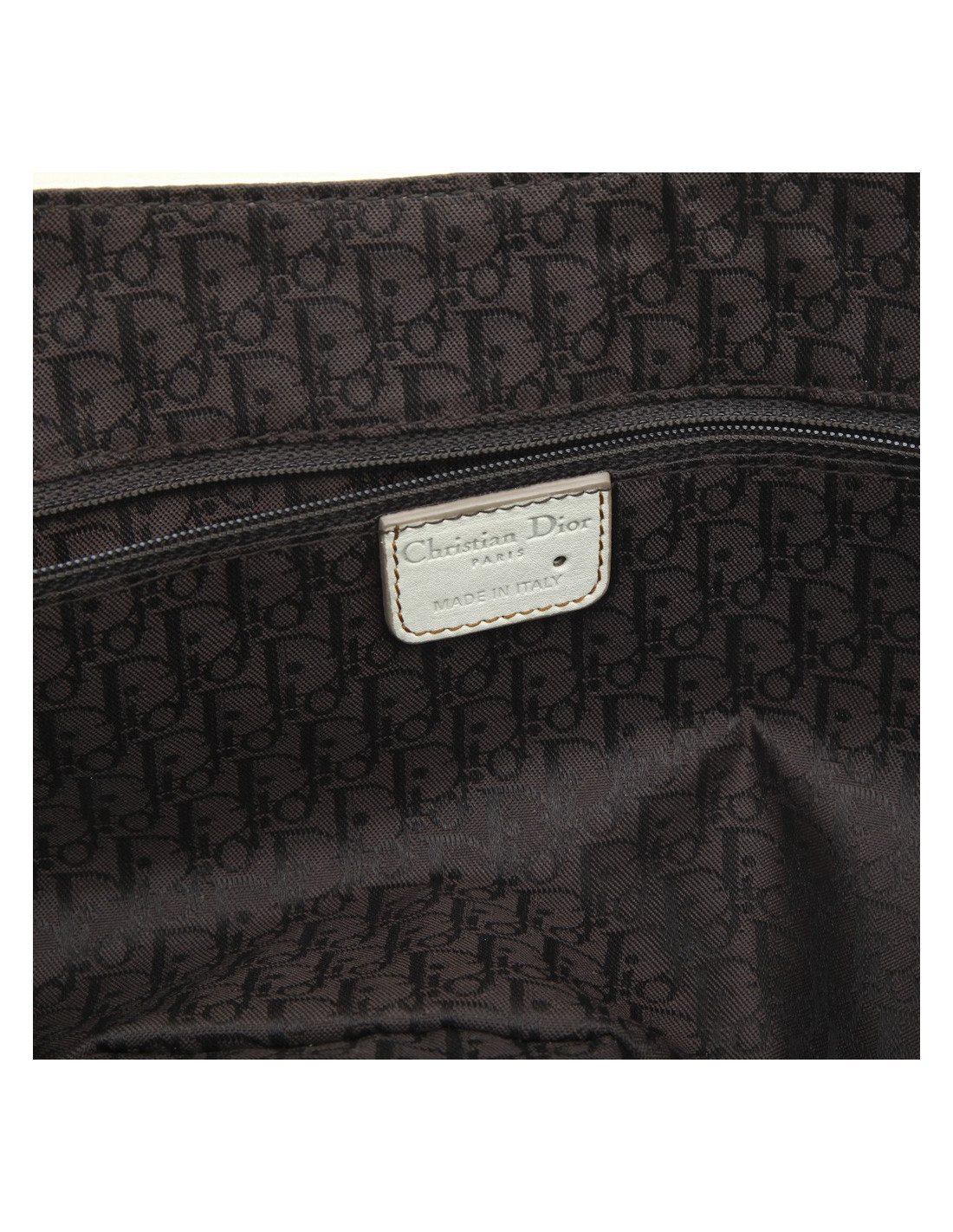 Christian Dior 'Saddle' bag in off-white and camel leather. Aged silver metal hardware. 2005 collection. Snap closure. The interior is in brown monogram fabric.