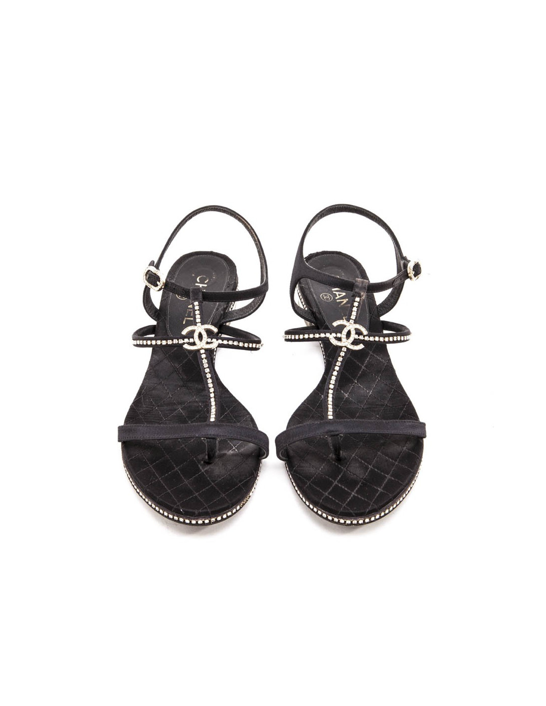 New Last items in stock SANDALS Sandales CHANEL T36,5 velours noir blanc CHANEL 42537 550.00 € Discover these exquisite Chanel CC slide sandals, a true testament to timeless luxury, presented in pristine, never-worn condition. Crafted in Italy from sumptuously soft black velvet, these mules feature the iconic quilted pattern meticulously stitched in white, beautifully accentuating the interlocking CC logo. Designed for both elegance and comfort,... Add to cart