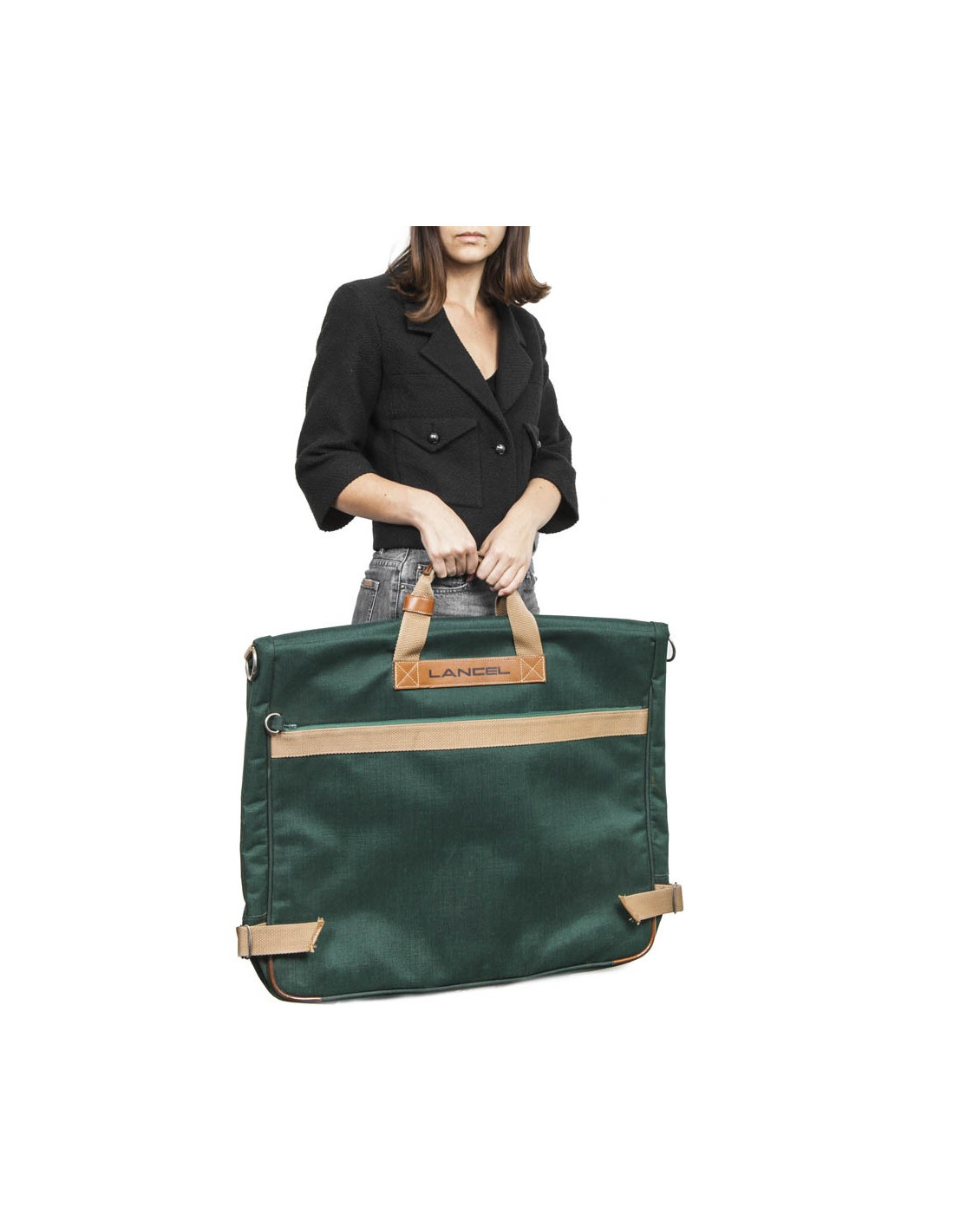 Last items in stock SATCHELS HERMES black canvas and leather bag HERMES 33219 1,290.00 € HERMES men's bag Condition : very goodMade in FranceMaterial : leather, cotton canvasColor : blackMeasurements : 37 x 30 x 6 cmHardware : silver finish metalLining: cottonDetails : Fits onto a telescope suitcase, padlock but no key, can hold a computer. Carried by hand or shoulder (with possibility of adding a shoulder strap). Double zipper closure. 1... Add to cart