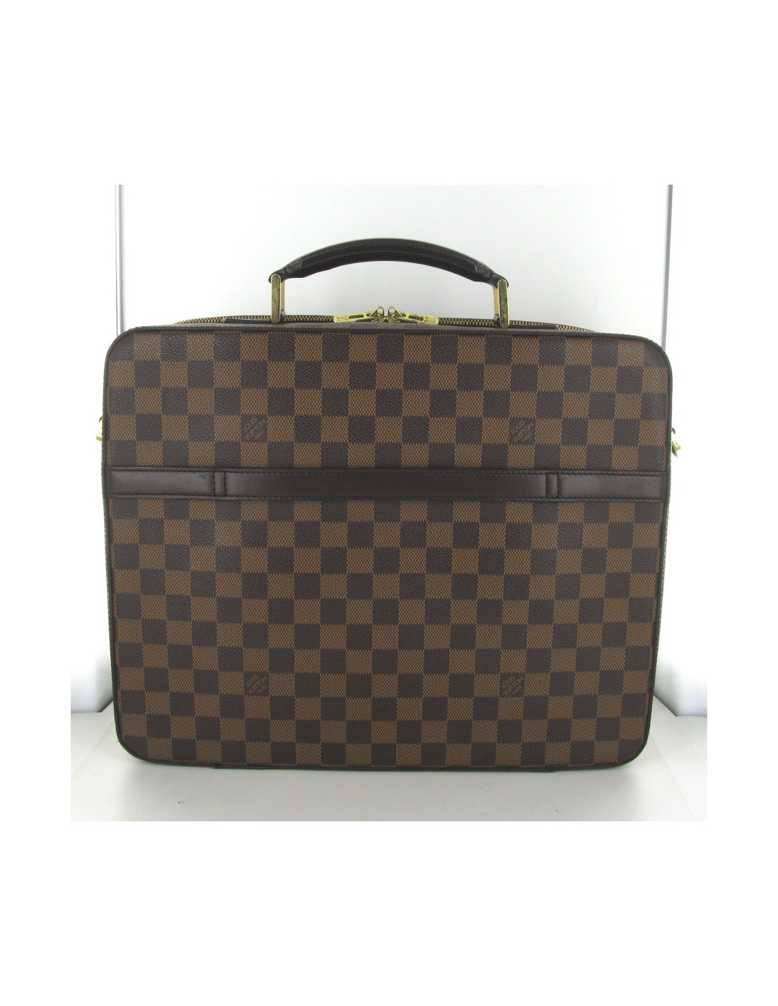 Nice computer bag LOUIS VUITTON model Sabana coated canvas Damier. The metal parts are made of gilded brass, the Interior is brown canvas. There is a front pocket, 1 inside pocket closed with snap and 6 plated inside pockets. Comes with strap in removable fabric, padlock and key and dustbag.