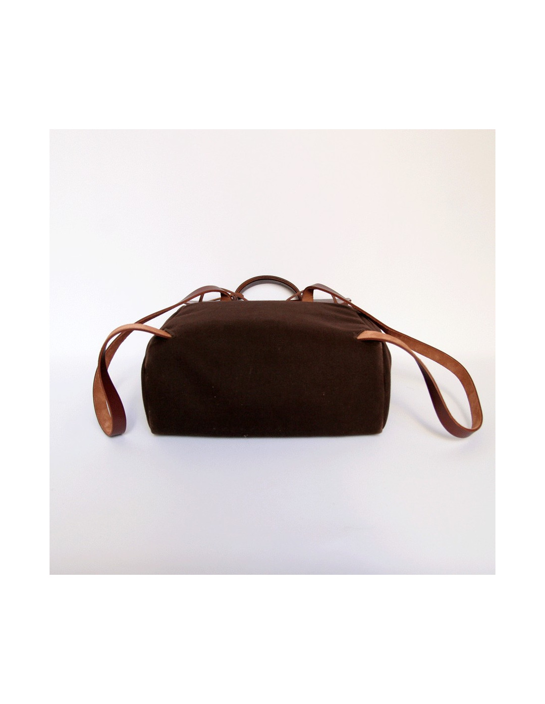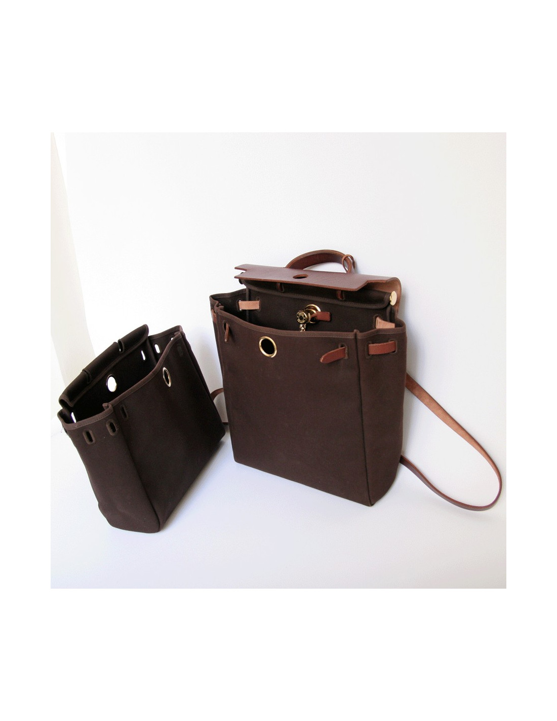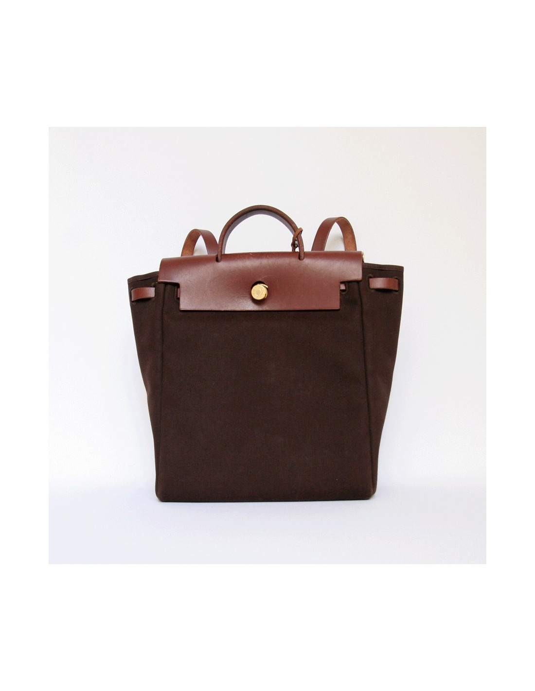 Traditional chocolate canvas bag HERMES Herbag. The rabat and the handles are calf leather. A large main cargo to put all your accessories. It is hand or bag backpack.