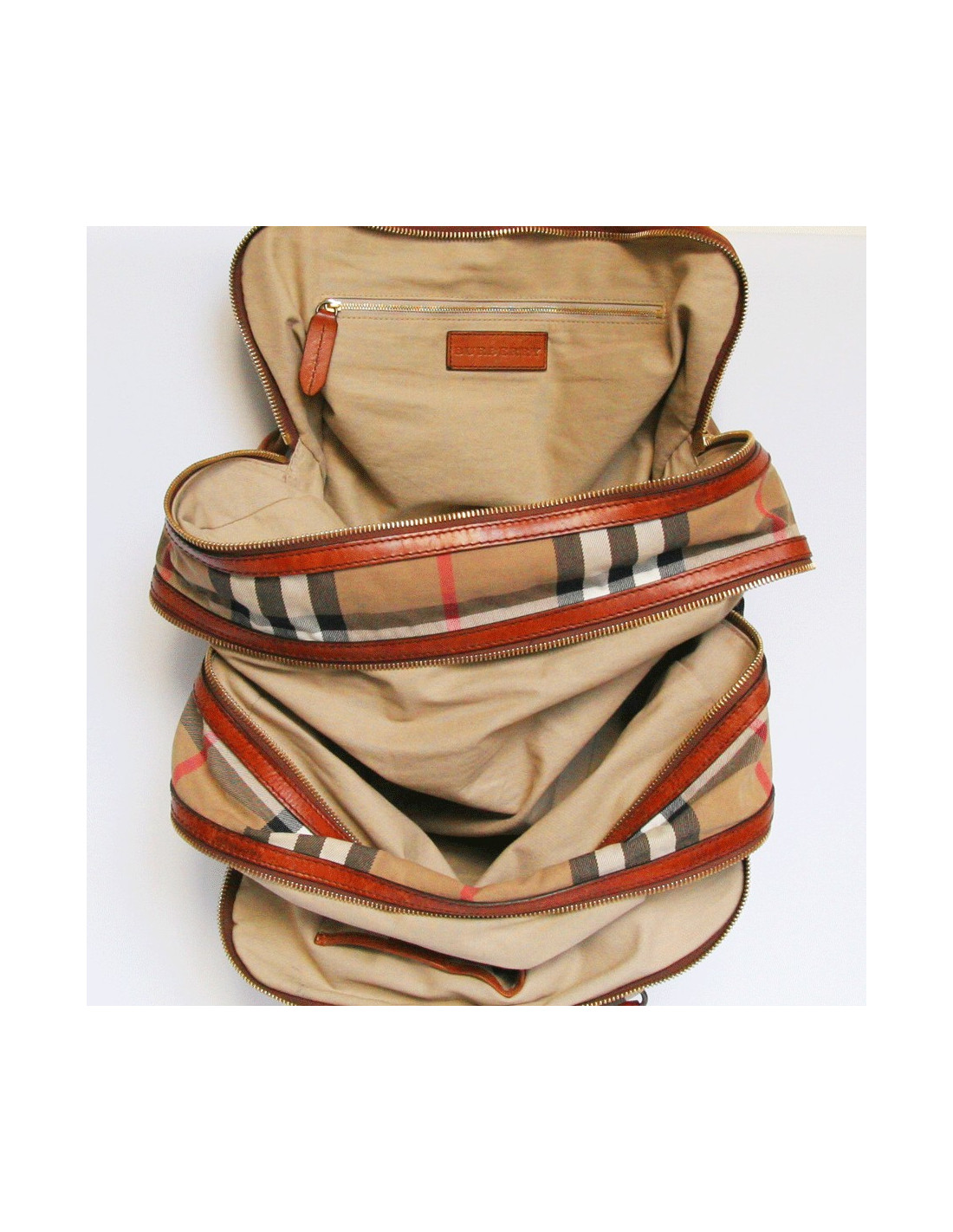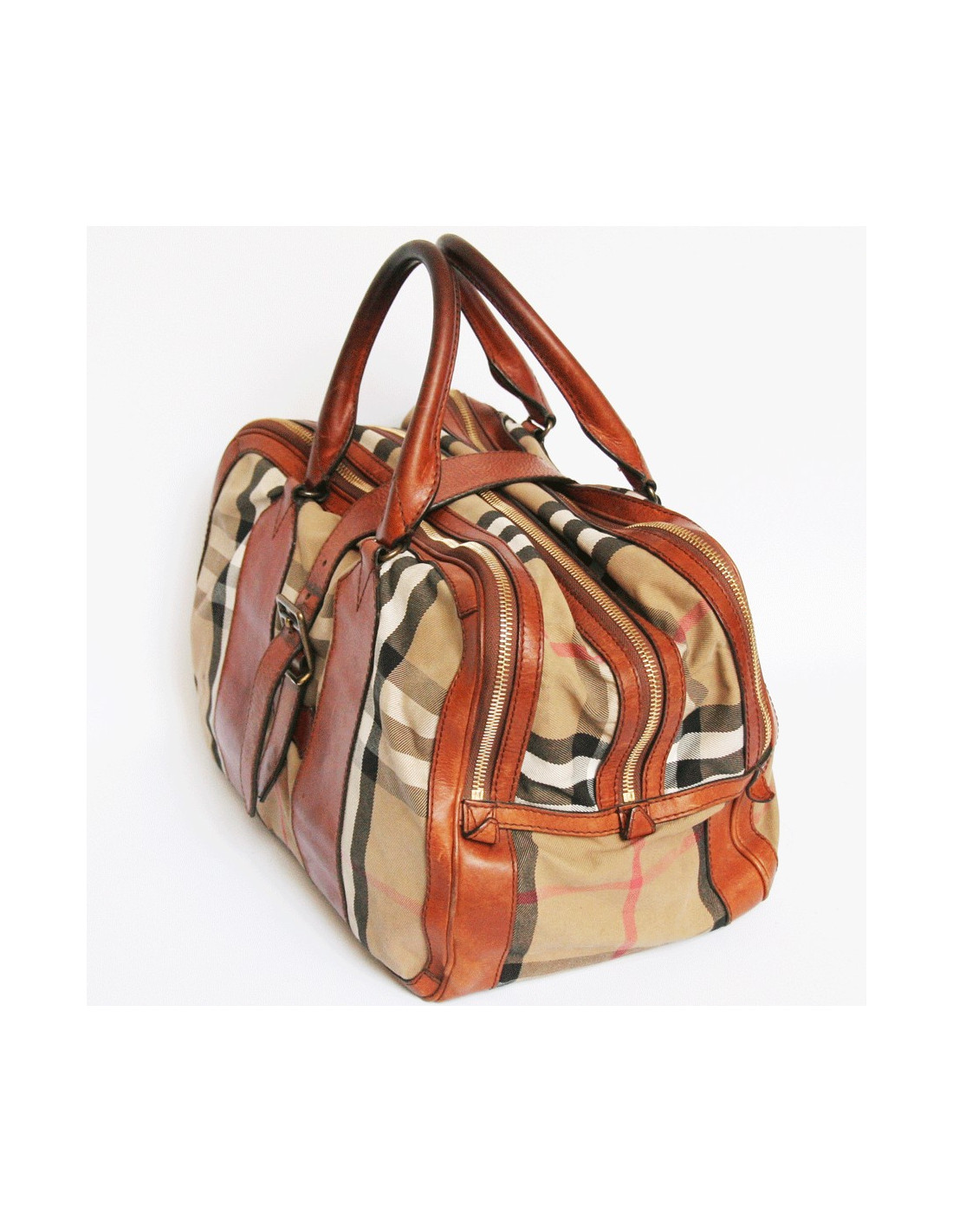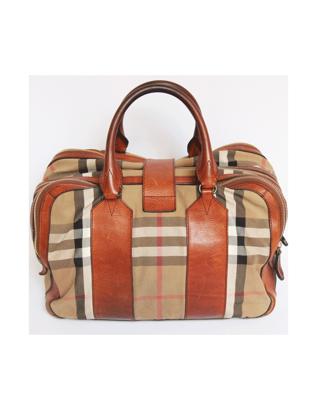 Large bag BURBERRY canvas monogrammee and leather Brown, decorated with the famous tartan pattern.