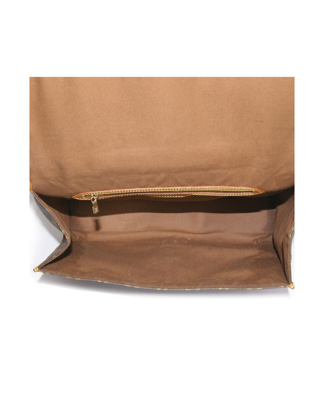 Door-documets "Beverly", Louis Vuitton canvas monogram and natural leather, closure with buckle in natural leather on flap. It is convenient to store an ipad, little mac, files, etc. It is handmade using a loop which measures 20 cm. The Interior is in Brown canvas with a large storage space and a large zipped pocket. The jewelry is gold metal. Very good condition. signature: Louis Vuitton made in France.