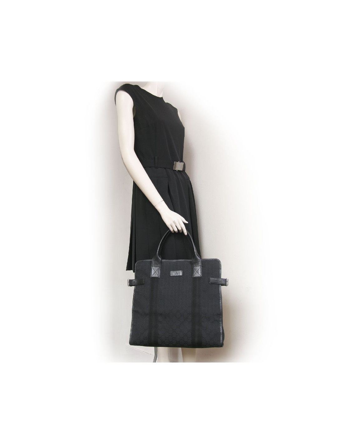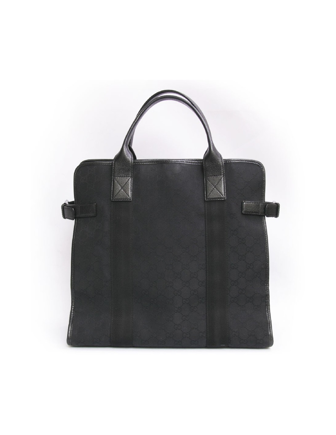Gucci Tote in black leather and monogram canvas bag. Double handle. The Interior is black cloth with a large zippered pocket. In very good condition. Slight wear to corners under the bag.