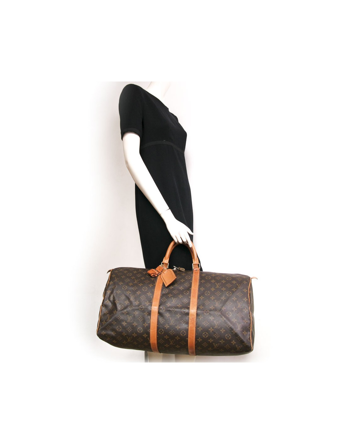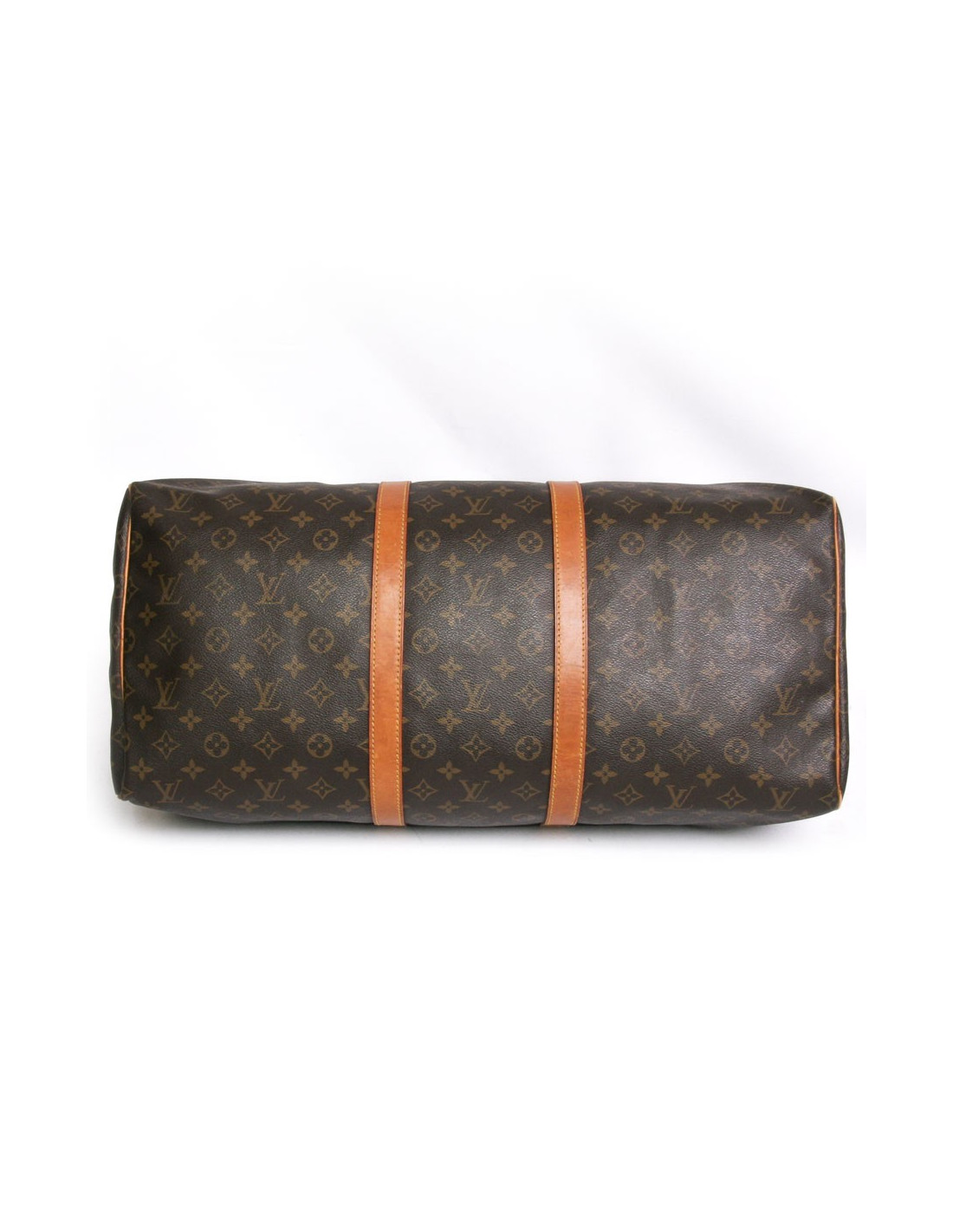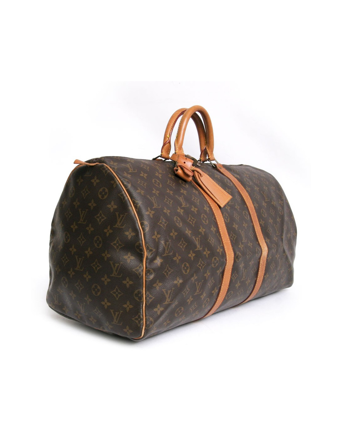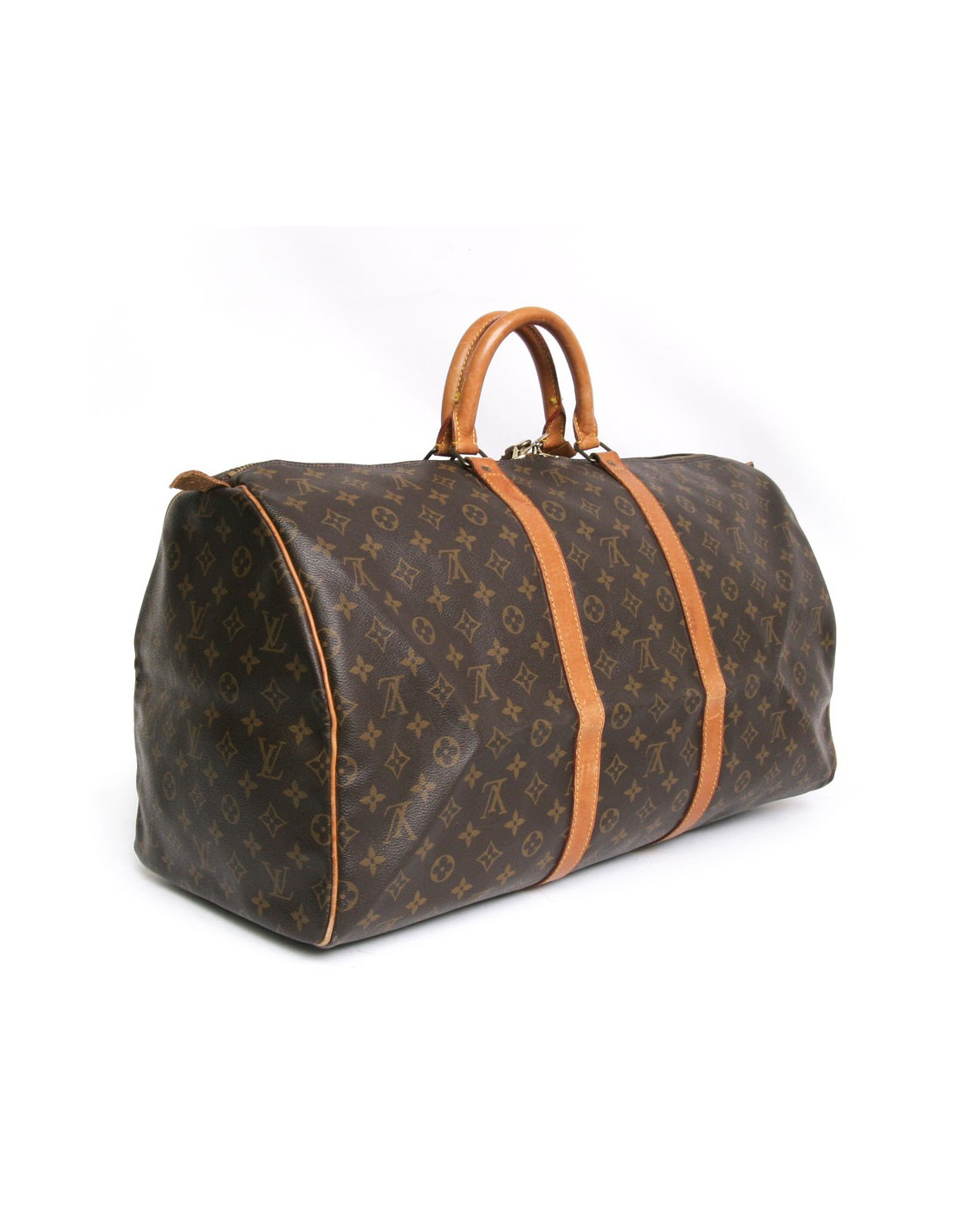 Bag "keepall 55" of the Maison Louis Vuitton monogram canvas. An icon since its inception in 1930. Light, flexible and always ready for a start imminent but especially practical because of its cabin size. The metal parts are made of gilded brass. Zipped. Door hand using two handles. Door name. The lining is brown canvas. The facings are natural cowhide. In very good condition. Light leather skating and very slight wear to corners under the bag.