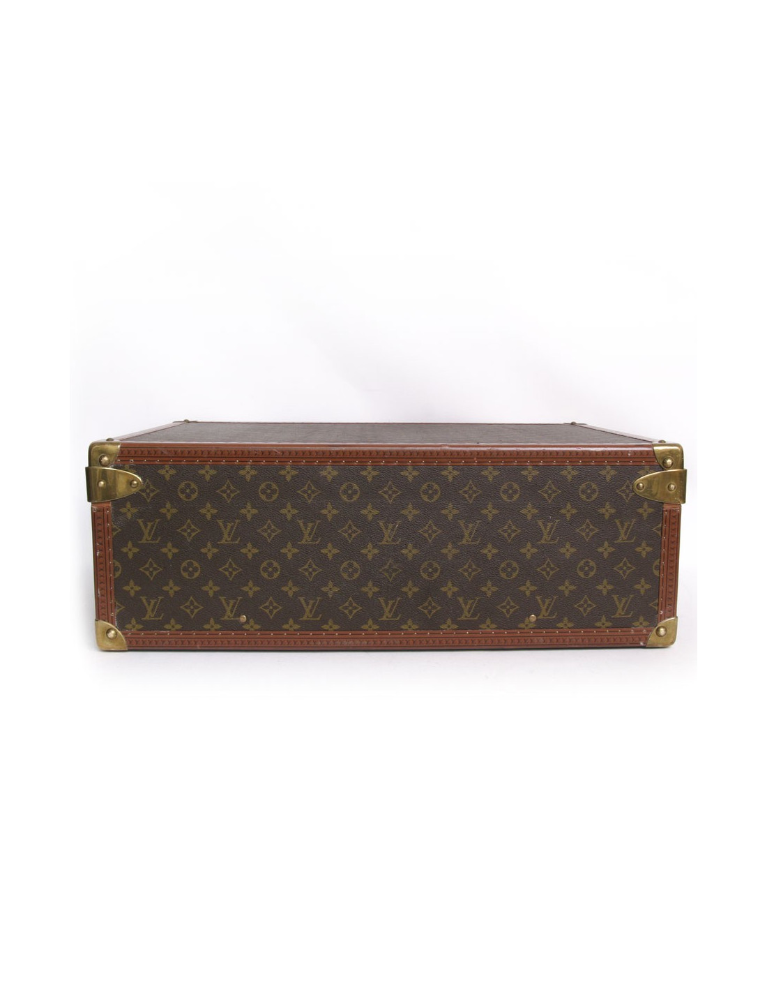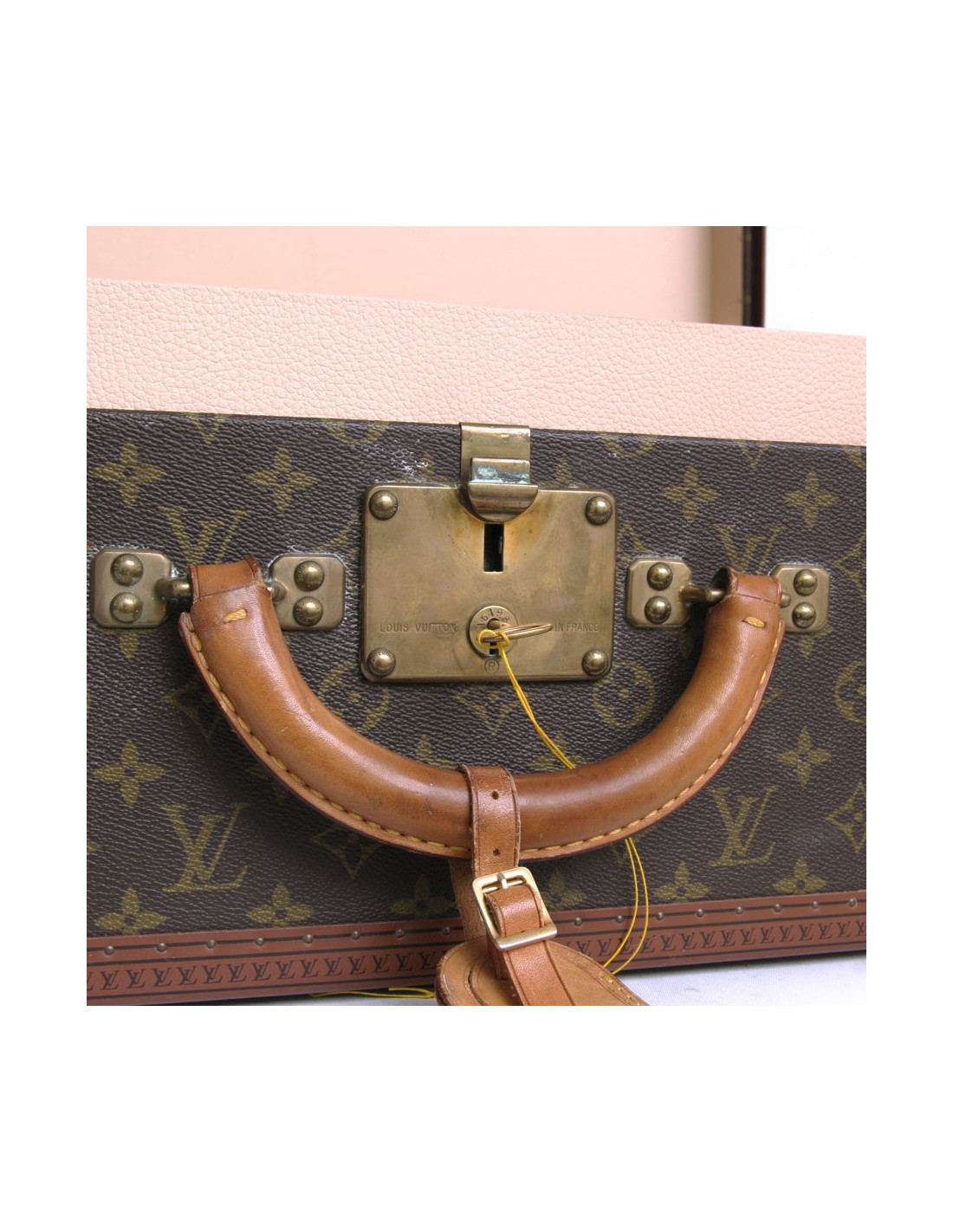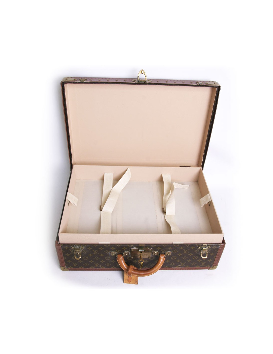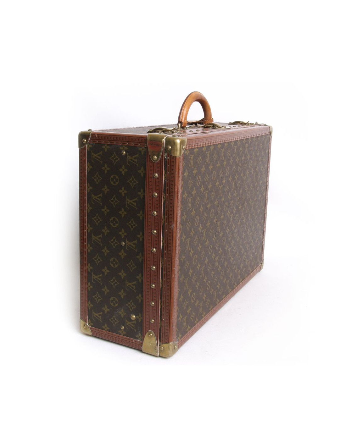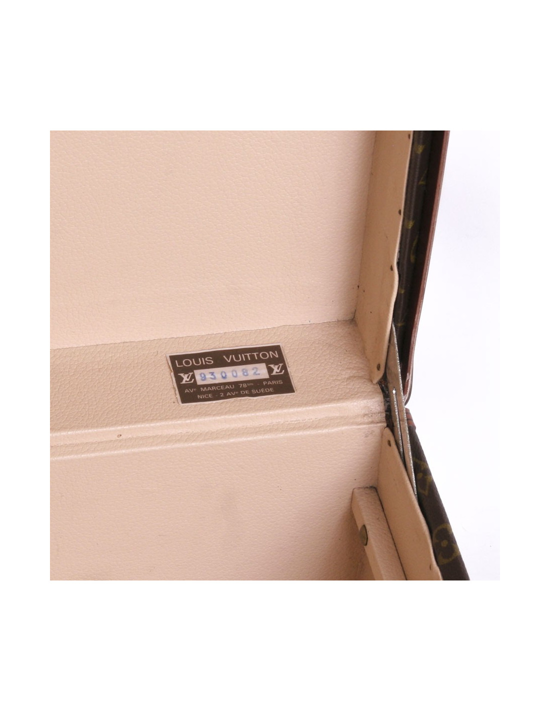 The famous suitcase "Alzer" of the Maison Louis Vuitton monogram canvas, fait partie des emblèmes de la Marque. Son volume équilibré et sa robustesse inégalables continuent de séduire de nombreux amateurs à travers le monde. Les poignees are made of natural leather. The Interior is canvas with straps of maintenance. The cloison is removable and cover protection. Enhanced "S" Louis Vuitton lock 2 additional latches. The bgarbage is leather reinforced rivets and brass corners. The pmetal ieces are golden brass. Hologram: 9300... In very good condition. A few fine scratches from use on one side. See photos. Height: 41 cm, length: 60 cm, depth: 21 cm