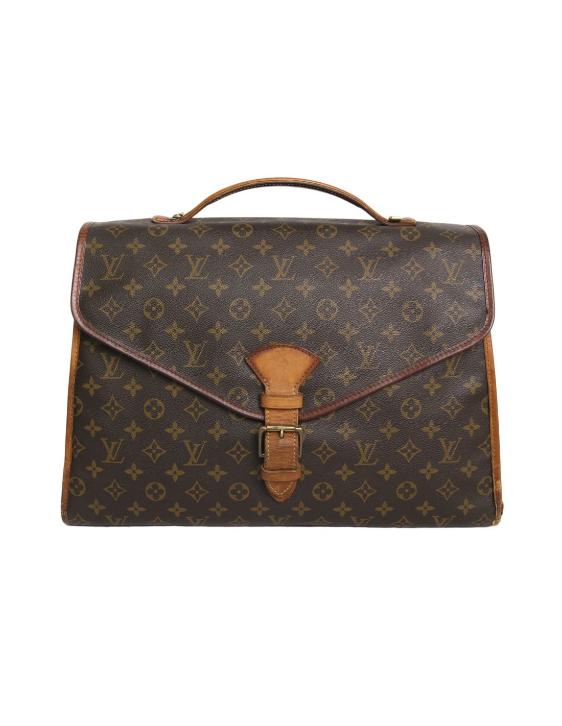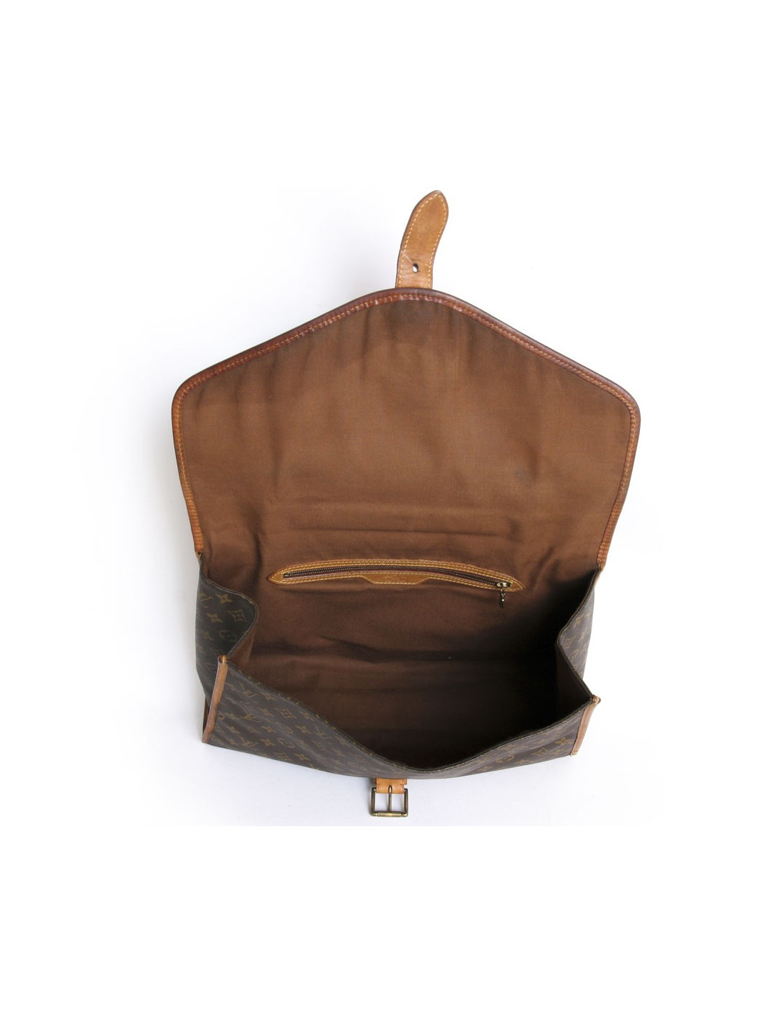 Great coated canvas monogram vintage Louis Vuitton bag. The Interior is in Brown canvas with a large zippered pocket. You can drag all your documents with its storage capacity. The jewelry is gold metal. The facings are natural cowhide. State vintage. The leather is skated, and it is worn under the bag on the right.