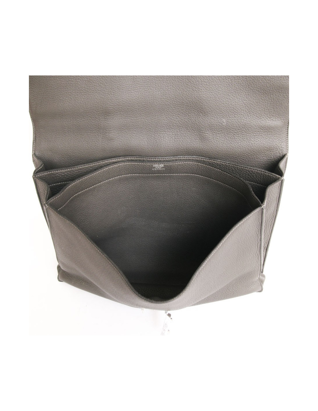 Dispatches taurillon gray elephant clemency Hermes leather handbag. letter k dan a square. It has 3 compartments and 2 bellows, with a double in the same leather. The clasp is metal ring, with zipper, Bell and key. Signed HERMES PARIS - made in France. It is in very good condition.