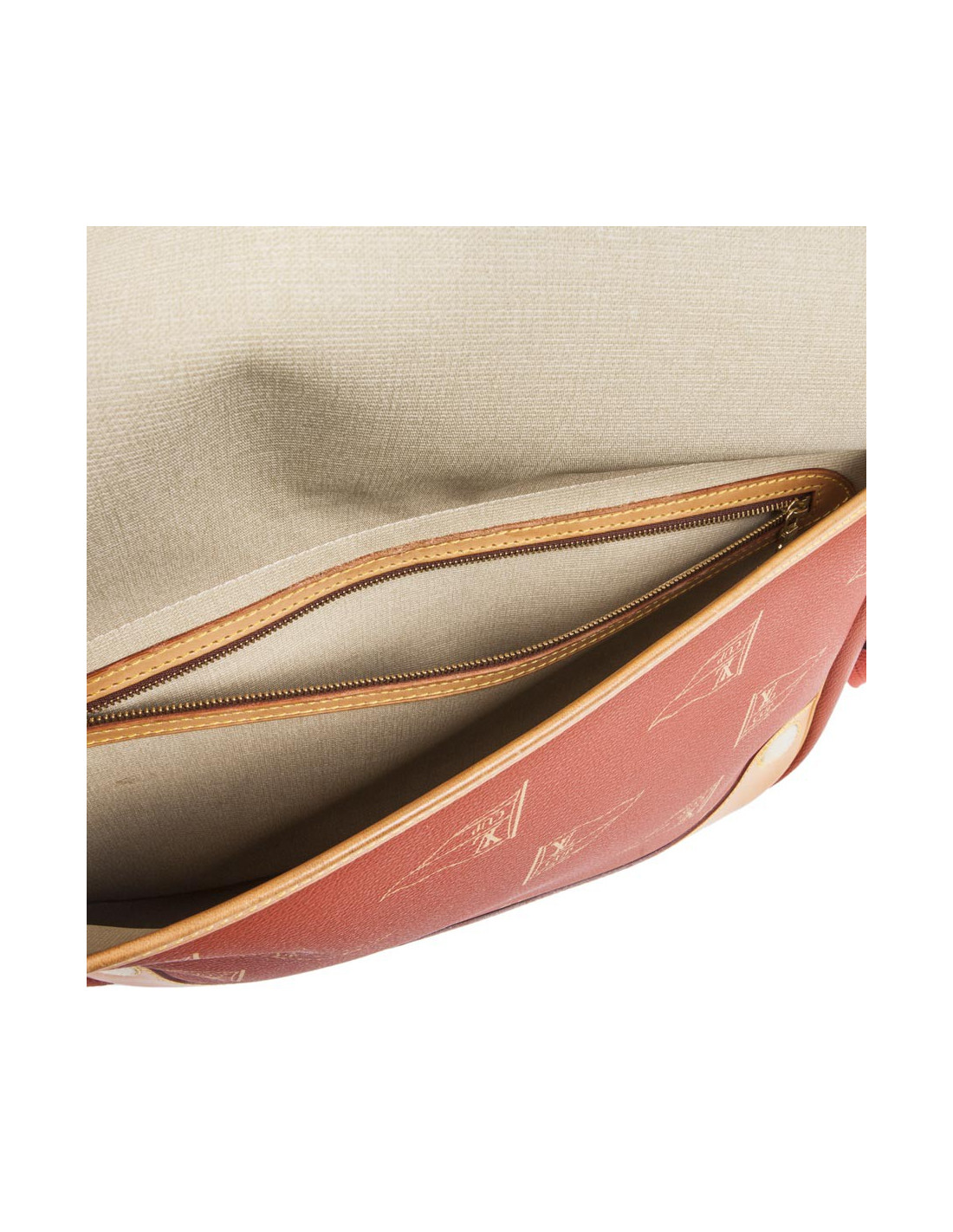 The edges in smooth natural leather are slightly weathered. Some marks of use below the flap.