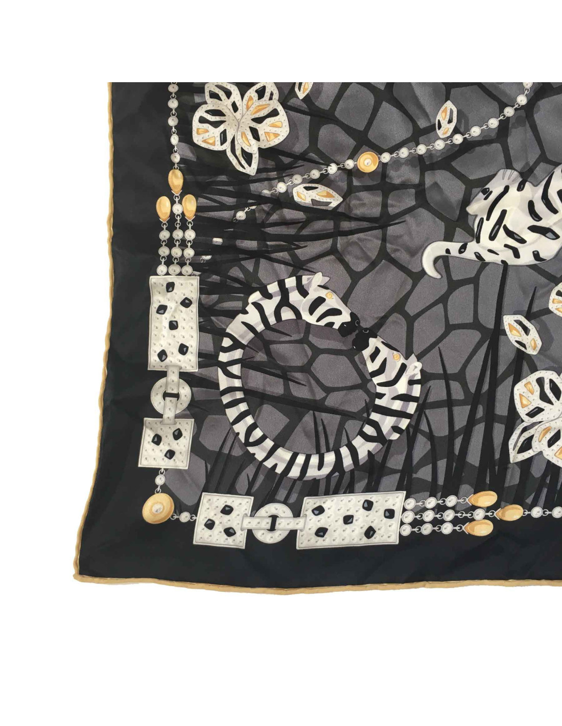 Cartier 'Panther' scarf in black,gray and gold silk.