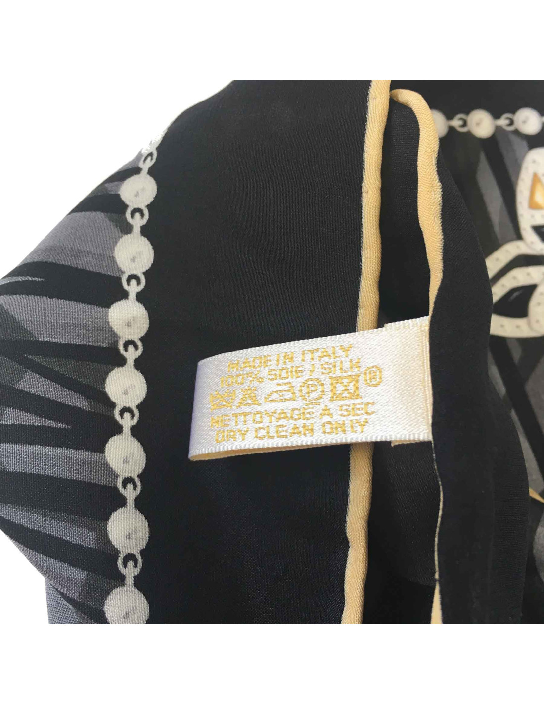 CARTIER 'Panthere" scarf in black gray and gold silk