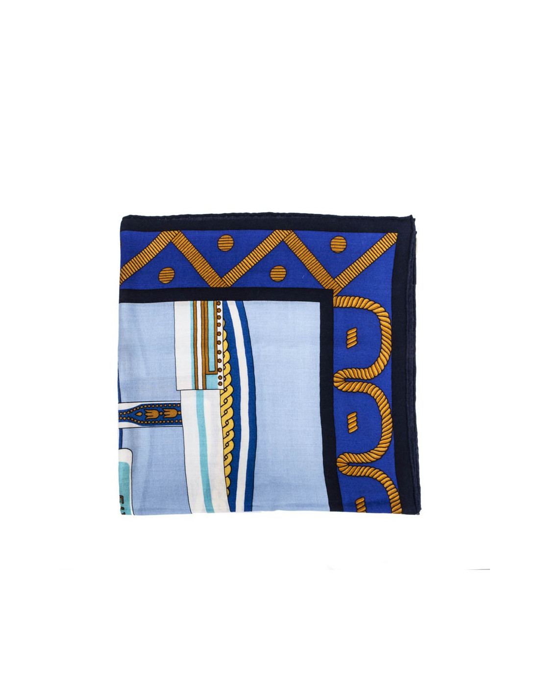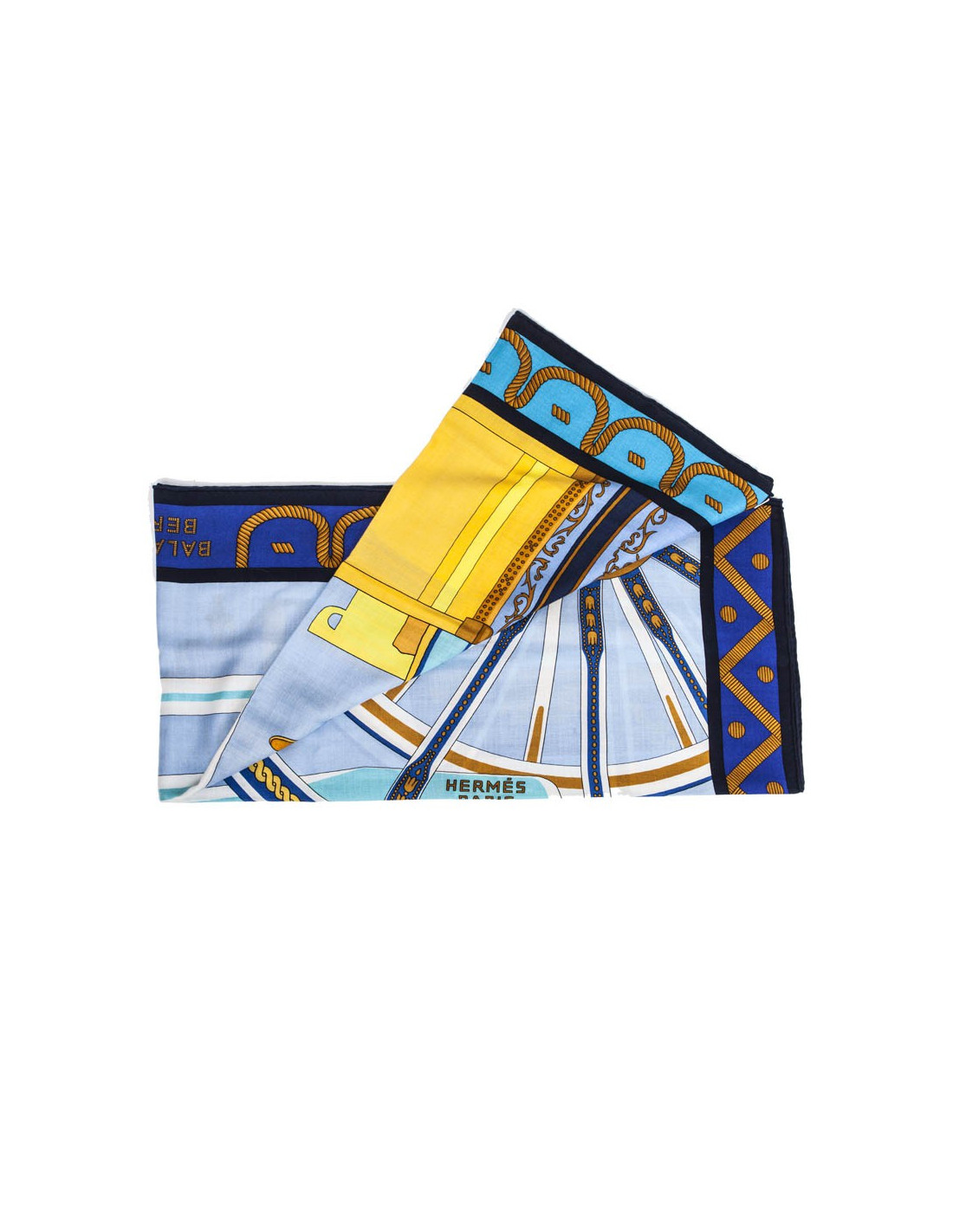 HERMES shawl 'balade en berline' in blue and yellow cashmere and silk
