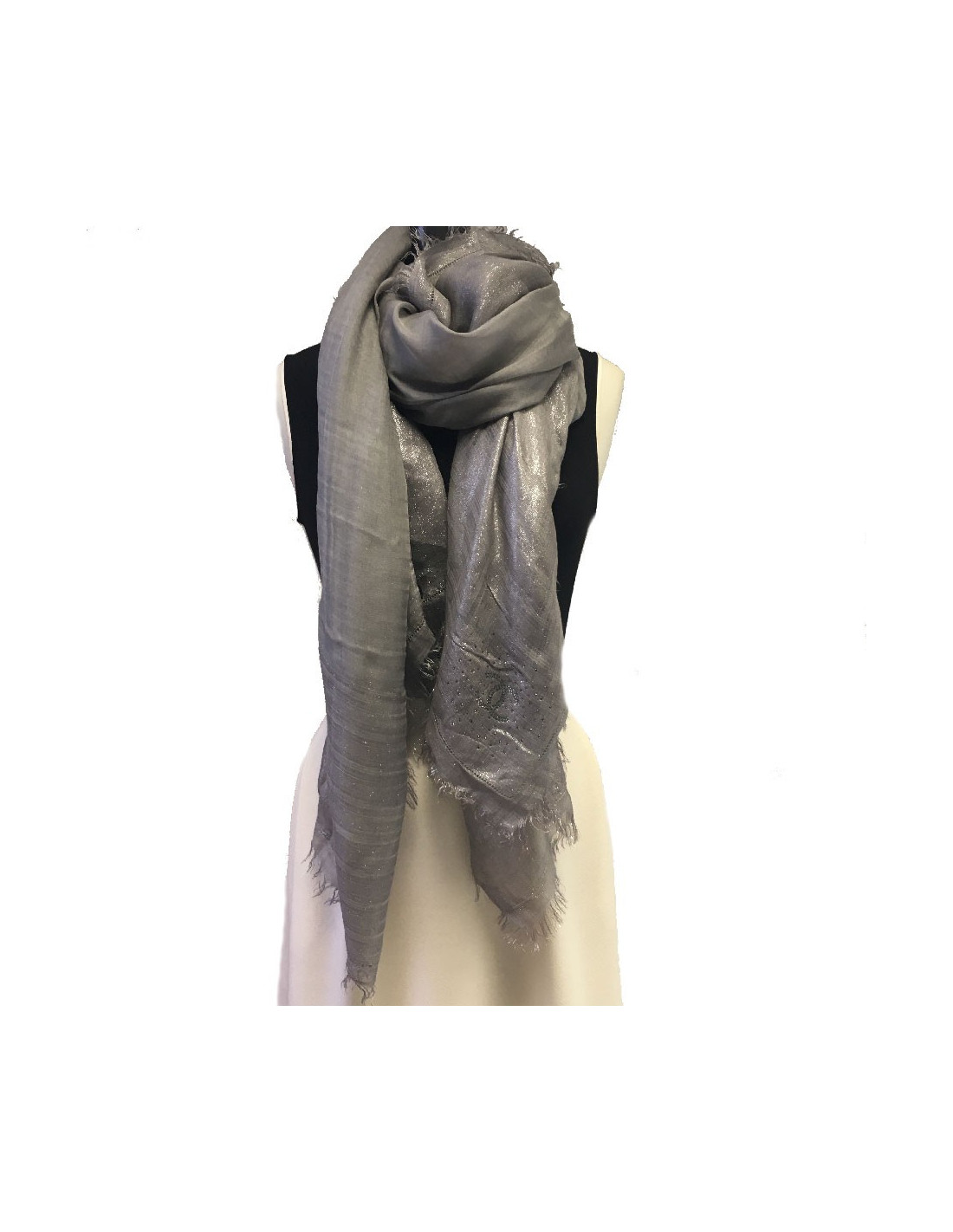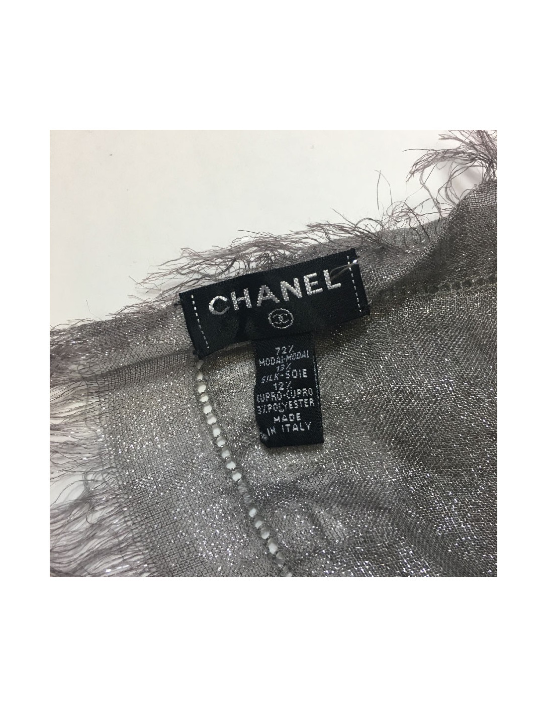 CHANEL shawl in grey modal, silk and cupro with silver threads