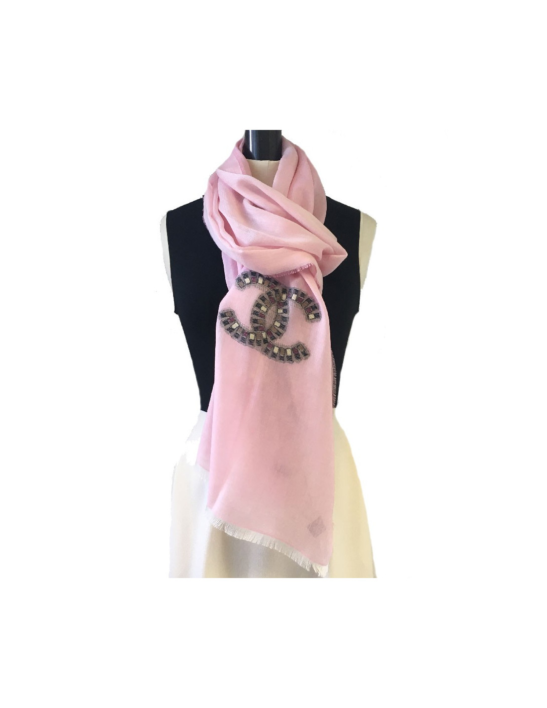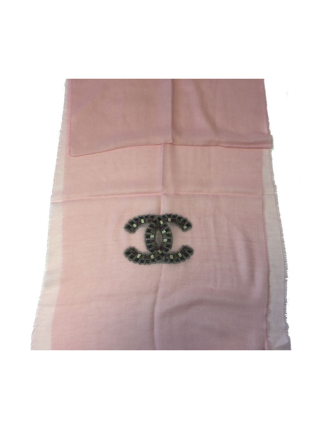 Last items in stock SCARVES AND SHAWLS CHANEL Cinecitta cahmere shawl CHANEL 32529 1,150.00 € CHANEL Cinecitta large shawl Condition : very goodMade in ItalyMaterial : 100% CashmereColors : beige, olive greenMeasurements : 190 x 132 cmDetails: Collector's piece. Beautiful lightweight cashmere scarf Add to cart