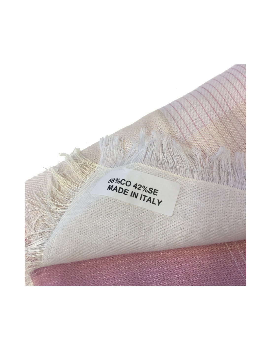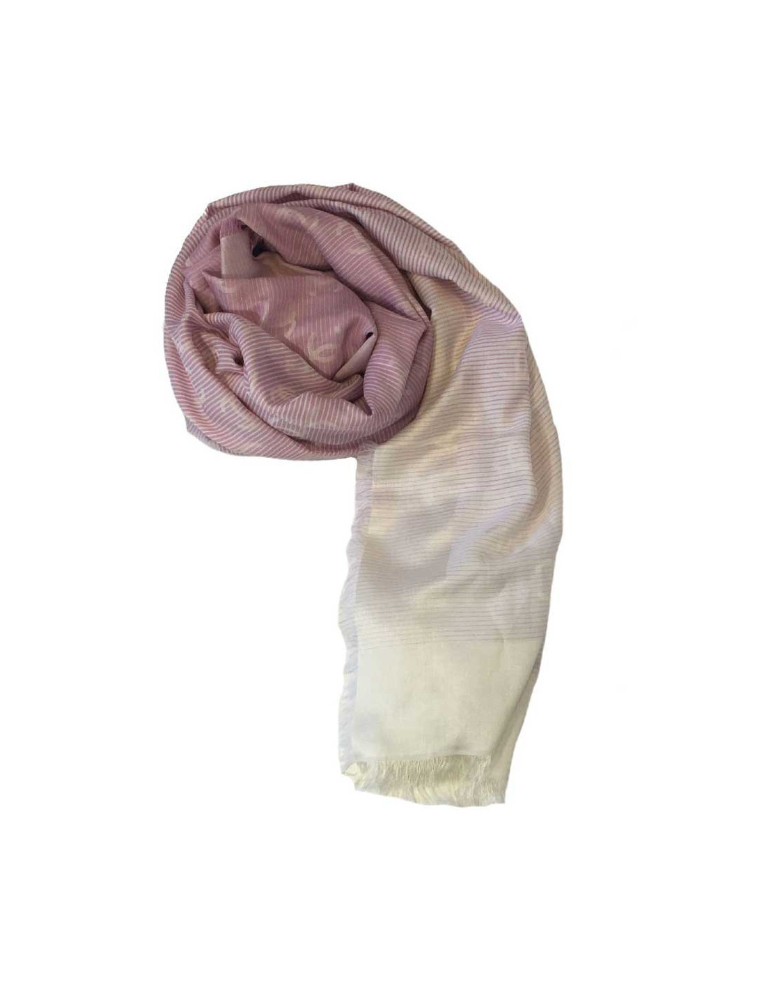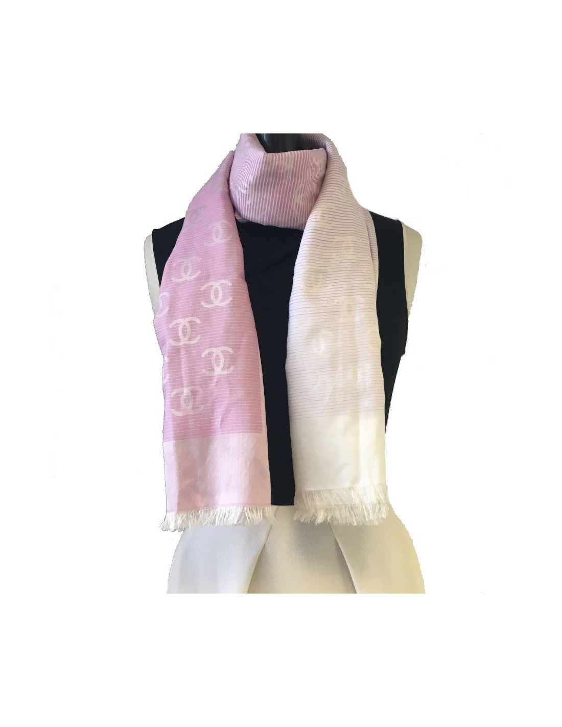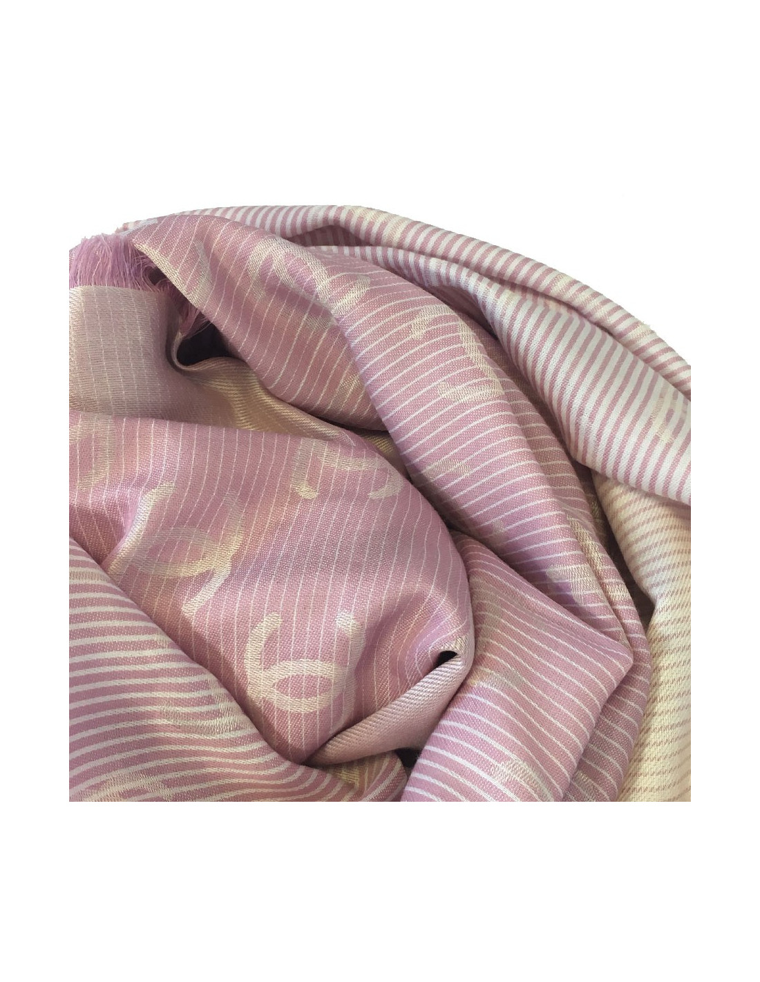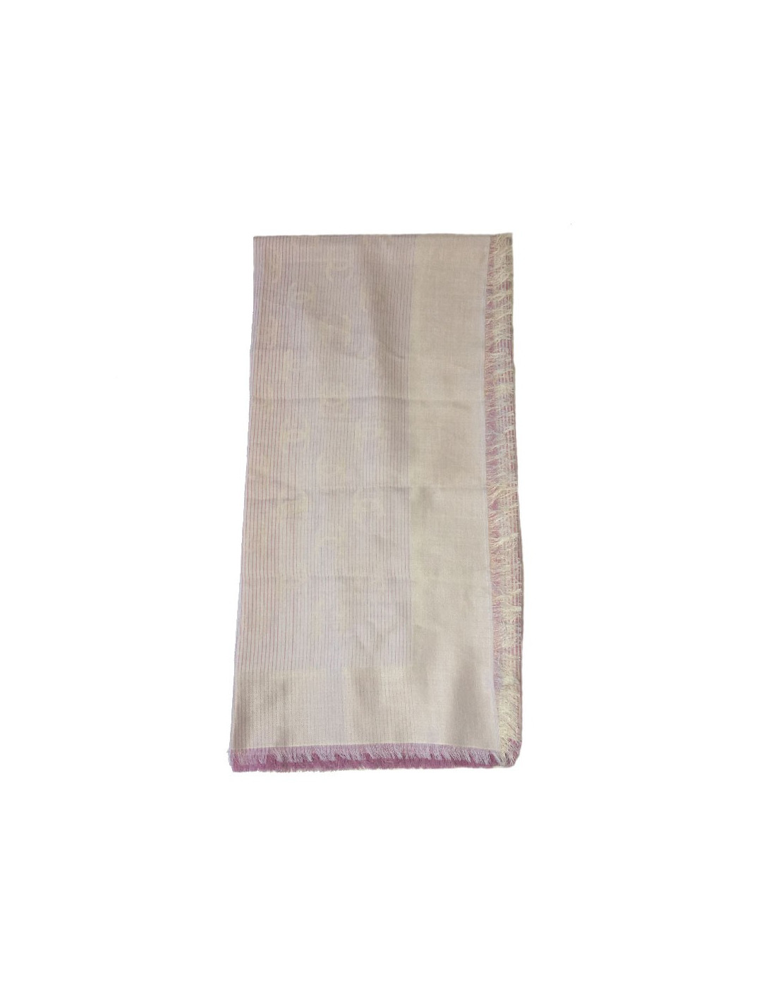 CHANEL shawl with small fringes in pink and white cotton and silk