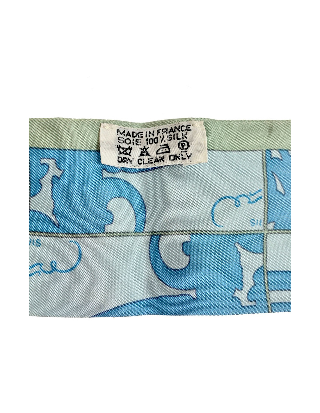 Last items in stock SCARVES AND SHAWLS CELINE sly blue silk scarf CELINE 17056 95.00 € CELINE sly blue silk scarf Condition: very good ( one tiny pulled thread)Material: silk muslinColors: sly blue, greenMeasurements: 84x85cmDetails: CELINE light-blue silk muslin scarf with round stone motifs in shades of green and blue. Delivered in a Valois Vintage Paris dustbag Add to cart