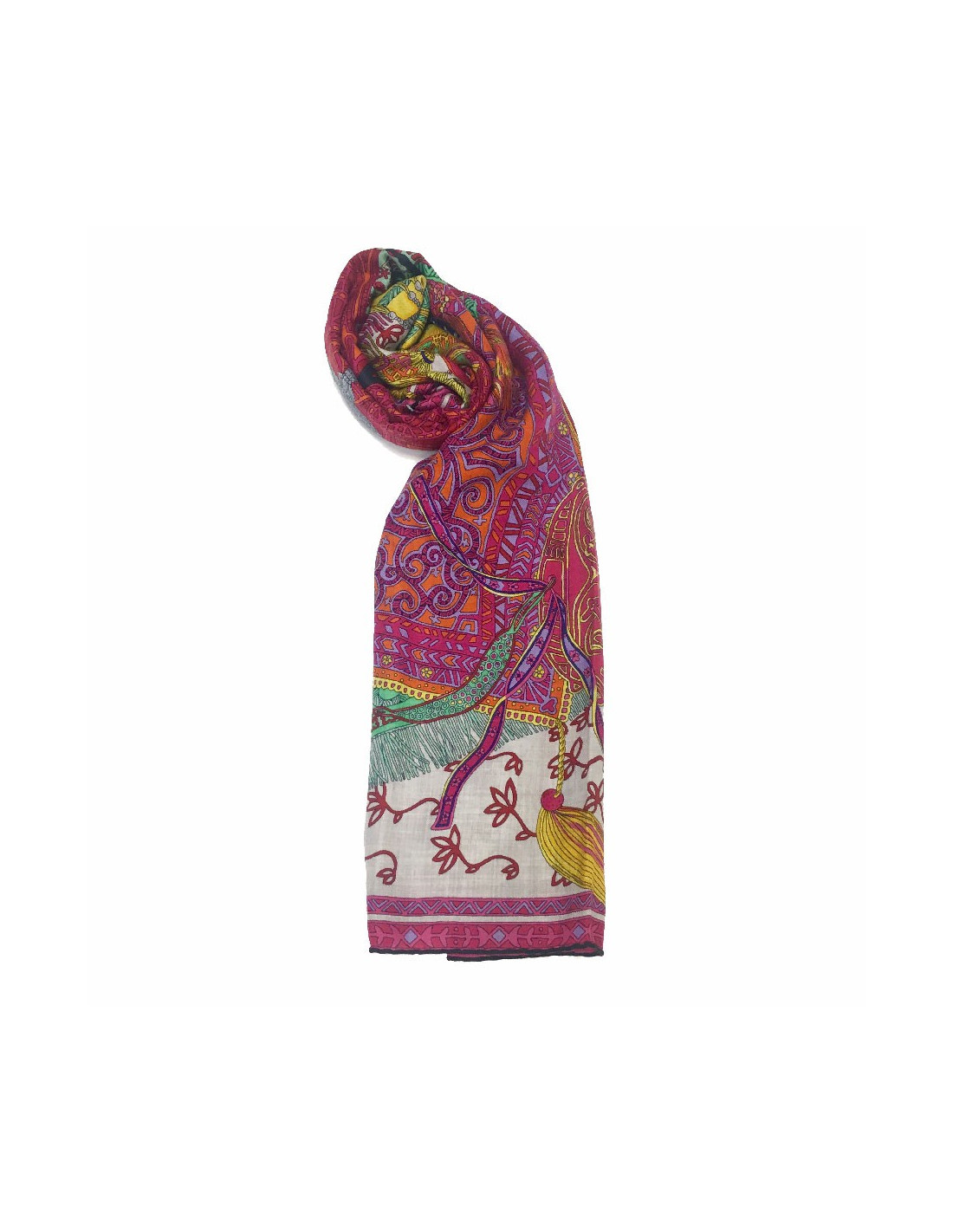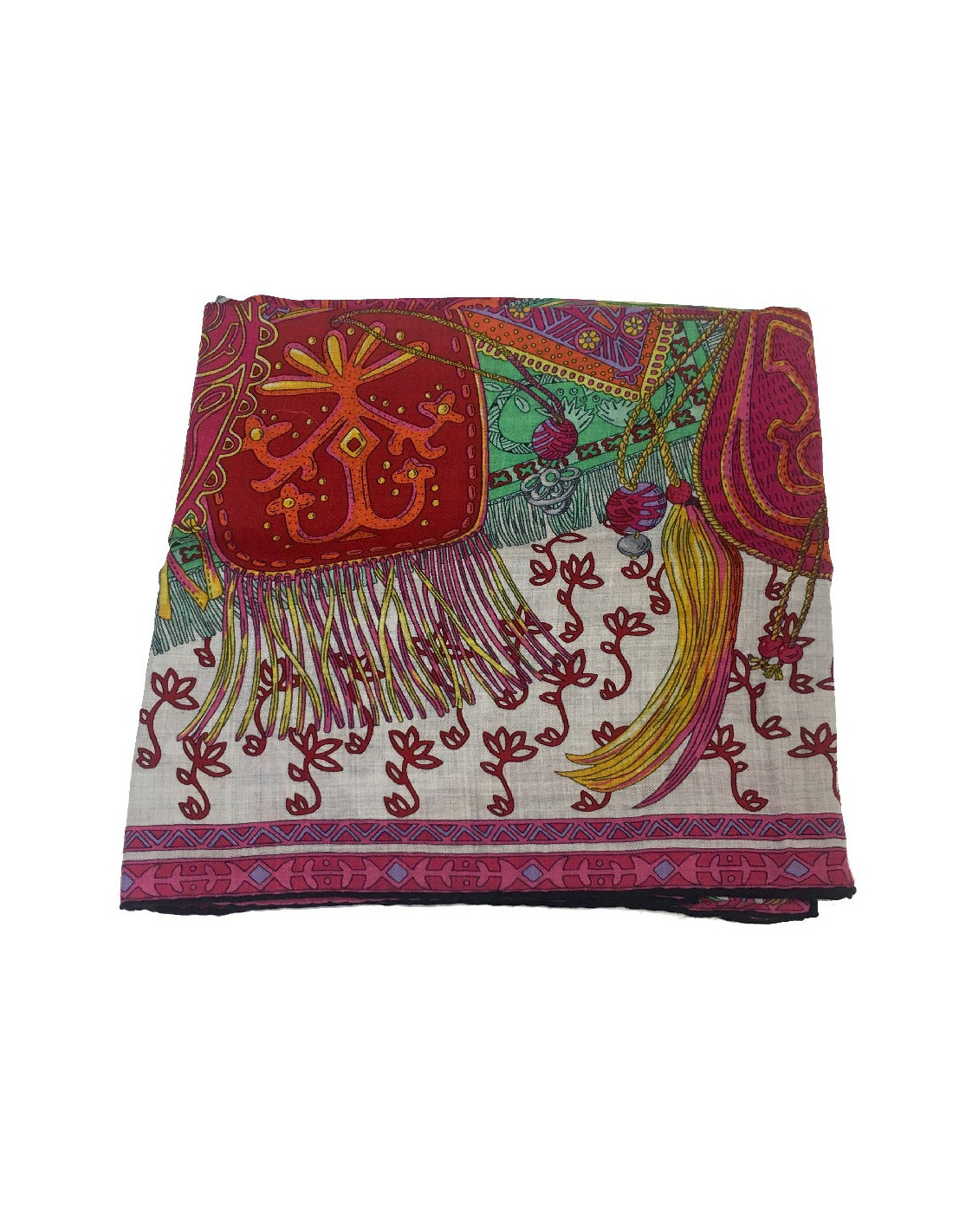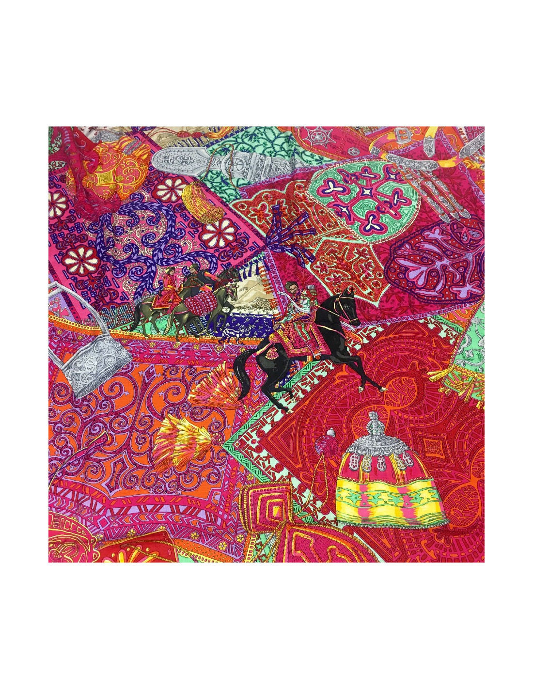 Hermès shawl 'Cavaliers du Caucase' in light gray, fuchsia and green cashmere and silk
