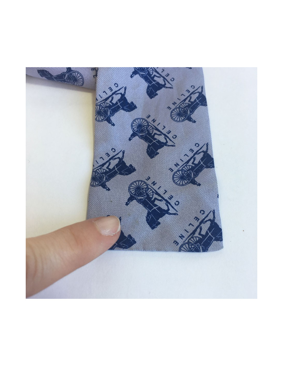 Last items in stock SCARVES AND SHAWLS CELINE sly blue silk scarf CELINE 17056 95.00 € CELINE sly blue silk scarf Condition: very good ( one tiny pulled thread)Material: silk muslinColors: sly blue, greenMeasurements: 84x85cmDetails: CELINE light-blue silk muslin scarf with round stone motifs in shades of green and blue. Delivered in a Valois Vintage Paris dustbag Add to cart