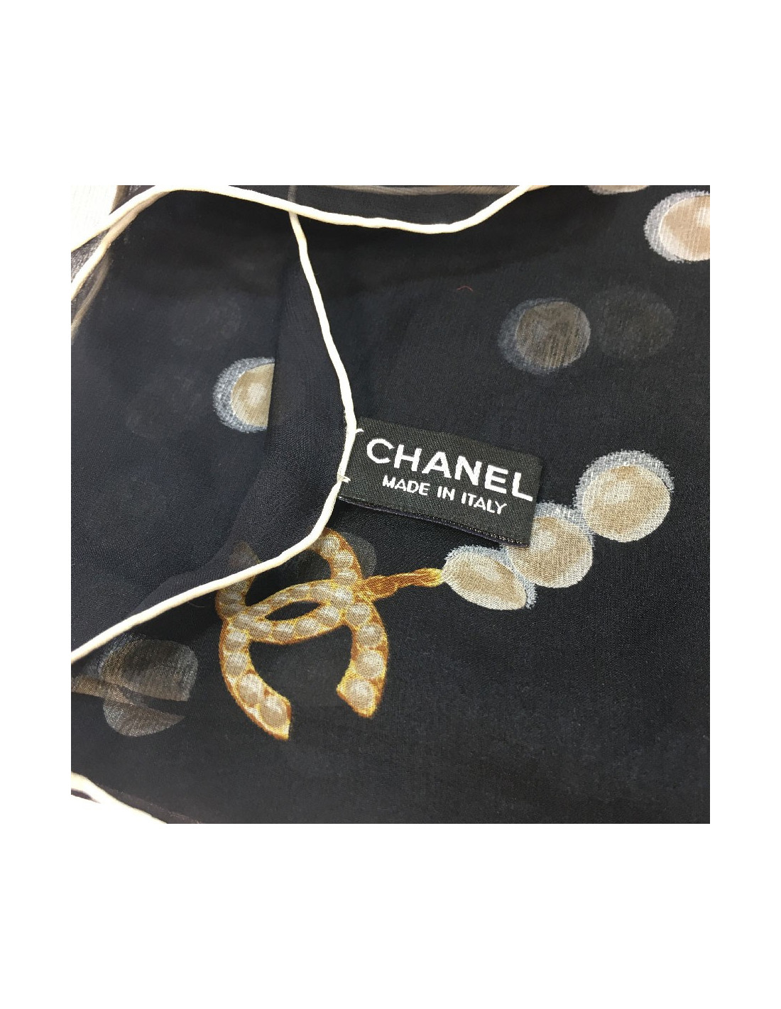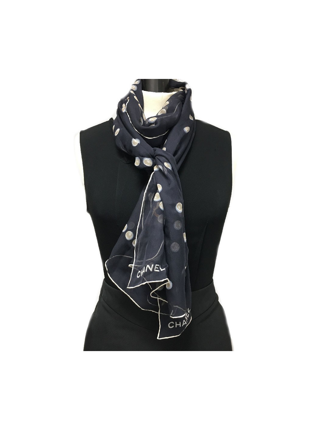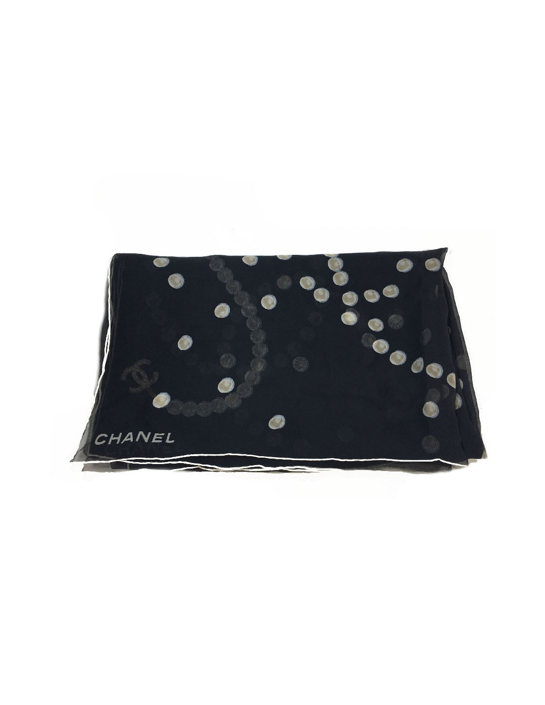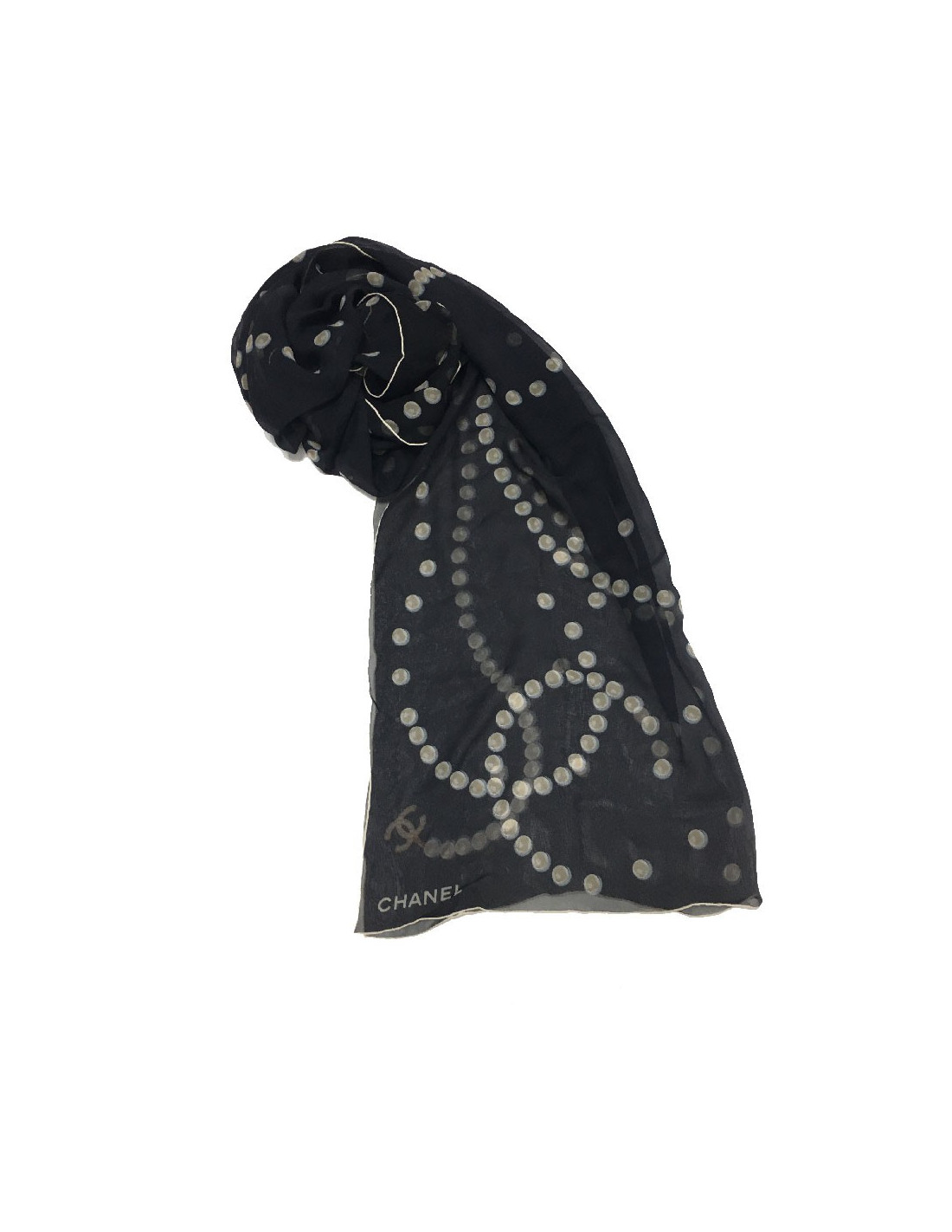 CHANEL long scarf in black chiffon