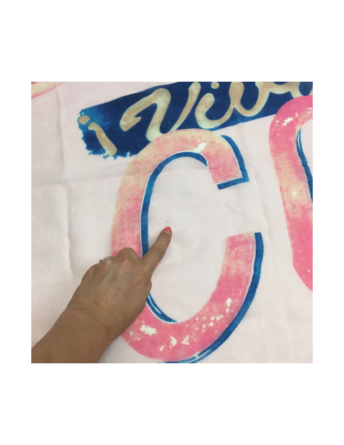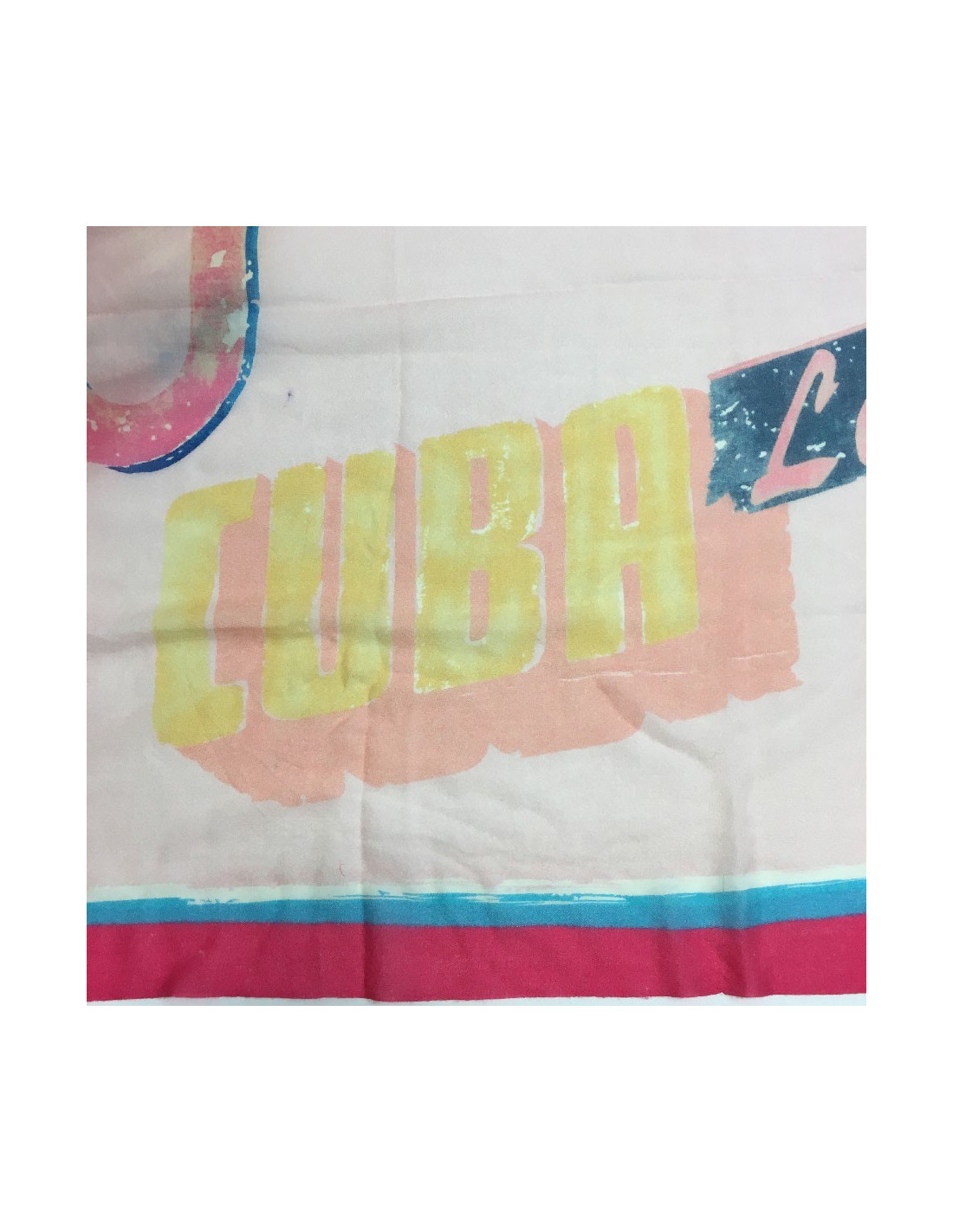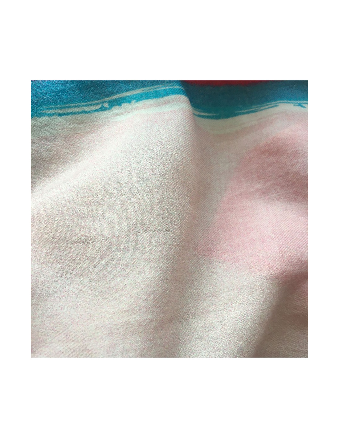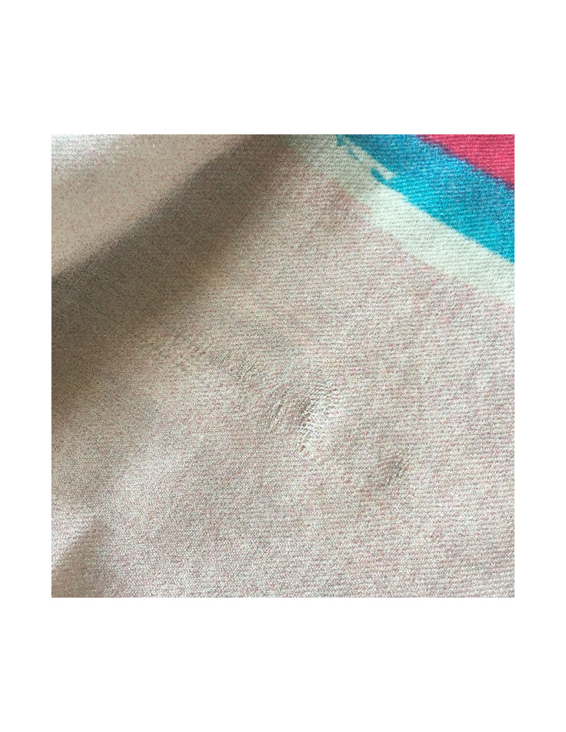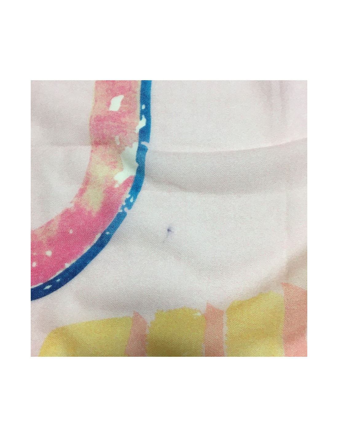 Small traces of pens and drown threads on the corners of the scarf. (view the photo).