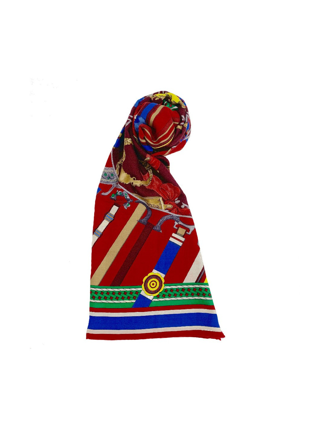 Last items in stock SCARVES AND SHAWLS CHRISTIAN LACROIX large silk voile scarf CHRISTIAN LACROIX 36420 160.00 € CHRISTIAN LACROIX patchwork silk scarf Condition : very goodMade in ItalyMaterial : silkColors : red, burgundy, orangeMeasurements : 135 x 69 cmYear : vintageDetails : LACROIX shawl in silk voile. Red, burgundy and orange patchwork geometric motifs Add to cart