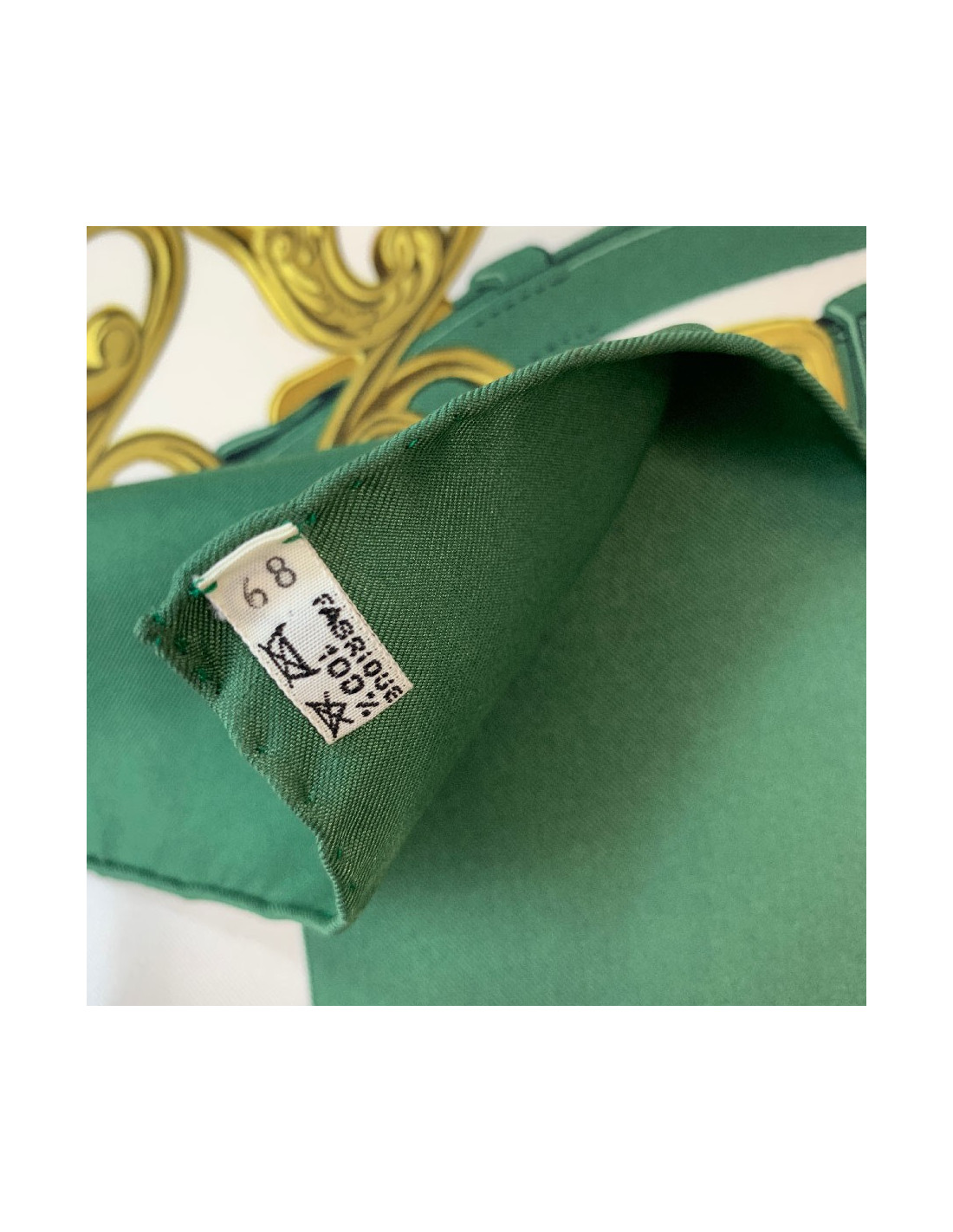 Sold SCARVES AND SHAWLS BREGUET green silk square scarf BREGUET 34356 190.00 € BREGUET vintage silk square scarf Condition : goodMade in FranceGender : womanMaterial : silkColors : beige, grey, light yellowMeasurements : 83 x 88 cmVintageDetails : handmade scarf, impeccably rolled hem, no stains but needs to be dry-cleaned. S of the salesRepresents the mechanism of a complication watch. View