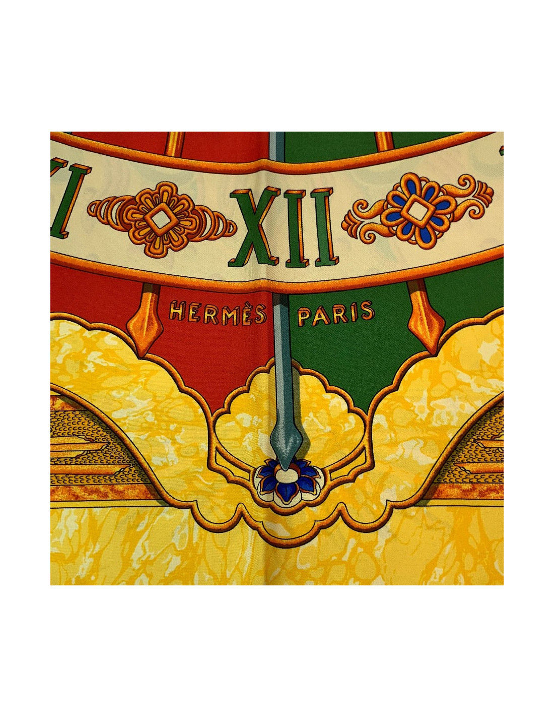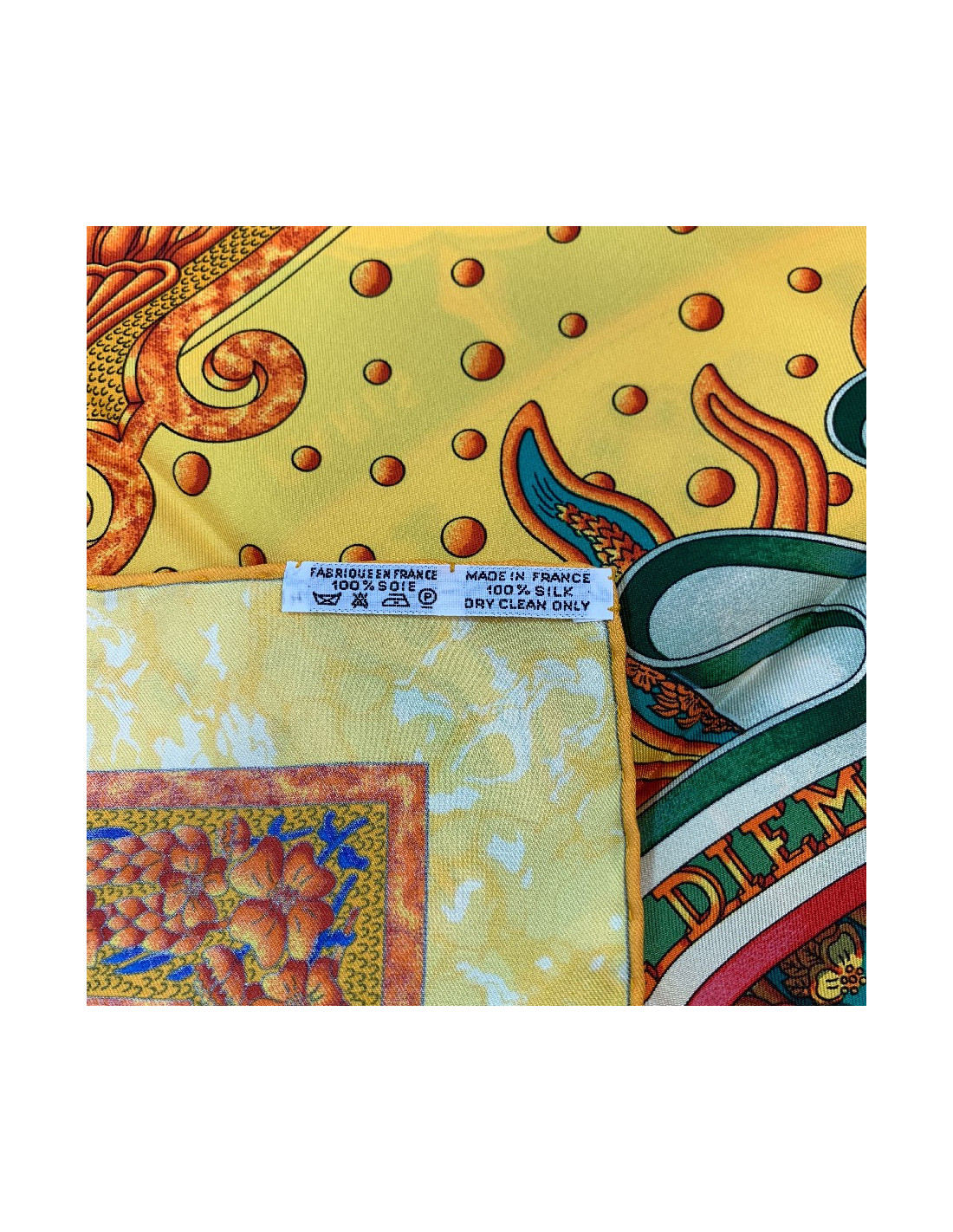 Last items in stock SCARVES AND SHAWLS HERMES "Folklore" white and yellow silk twill large scarf HERMES 17049 970.00 € HERMES "Folklore" white and yellow silk twill large scarf Made in FranceCondition: very goodMaterial: silkColors: yellow, white, blackDesigner: Henri d'Origny.S of the brand's salesMeasurements: 135x135xmDetails: HERMES “Folklore” giant square in feather silk twill with yellow borders on a white background. Impeccable black rolled hem. Advantage Valois... Add to cart