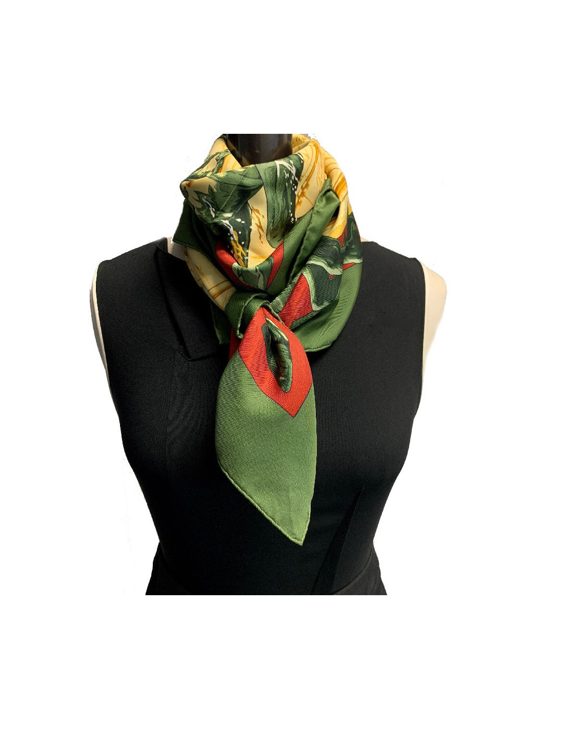 Sold SCARVES AND SHAWLS HERMES Les Cheyennes Collector square silk scarf HERMES 34875 980.00 € HERMES "Les Cheyennes" rare silk square scarf Condition : very good despite a small pulled threadMade in FranceMaterial : 100% silkColor: yellowMeasurements : 90 x 90 cmDesigner : Olivier KermitYear : 1993Details : A very rare square, much sought-after by collectors. Composition label missing, signed Hermès Paris.Oliver Kermit, son of an Afro-Texan... View