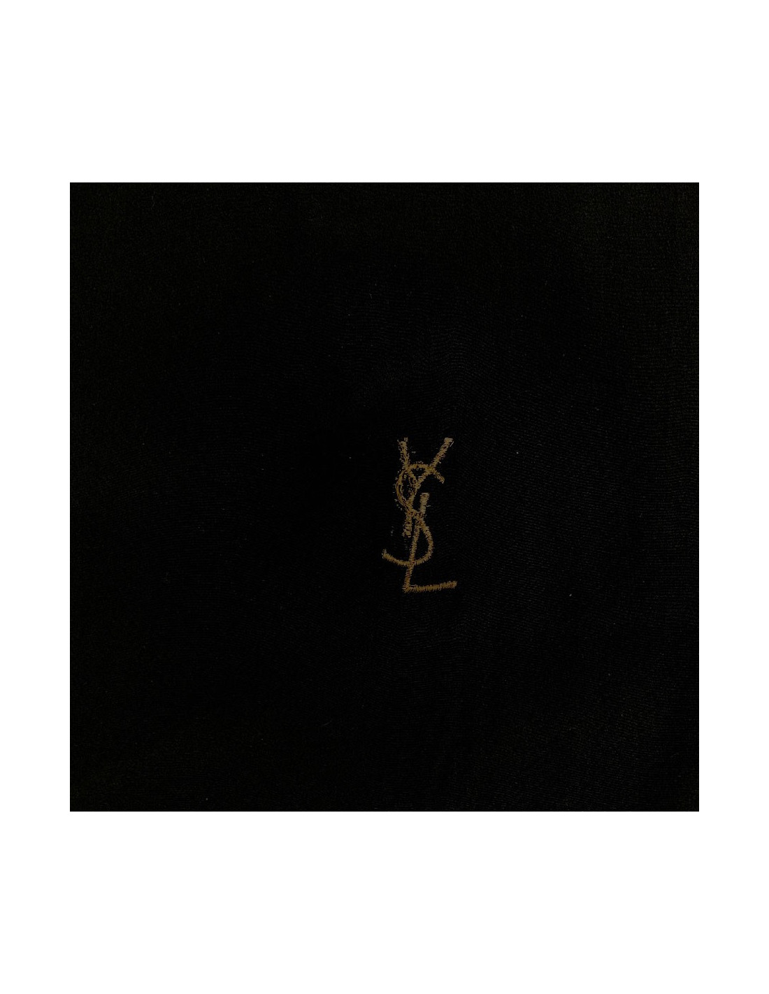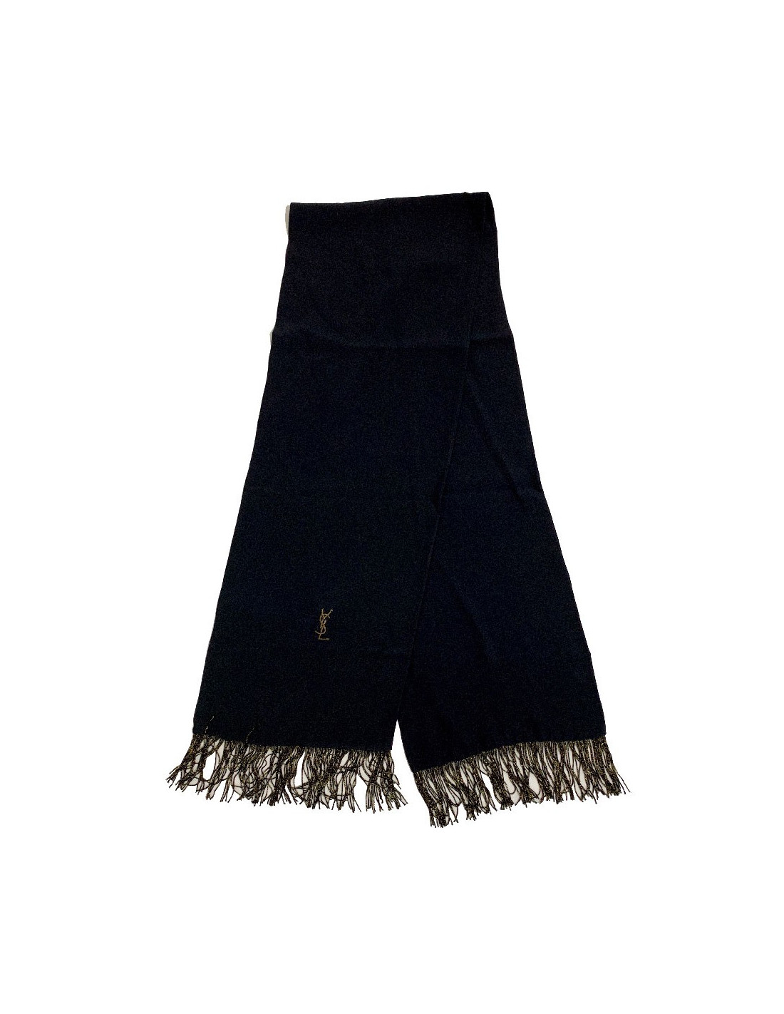 YVES SAINT LAURENT vintage black silk scarf with black and gold fringes