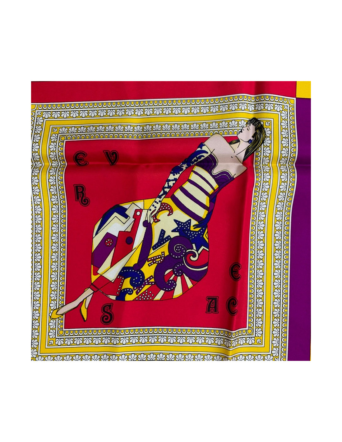 Last items in stock SCARVES AND SHAWLS HERMES "Folklore" white and yellow silk twill large scarf HERMES 17049 970.00 € HERMES "Folklore" white and yellow silk twill large scarf Made in FranceCondition: very goodMaterial: silkColors: yellow, white, blackDesigner: Henri d'Origny.S of the brand's salesMeasurements: 135x135xmDetails: HERMES “Folklore” giant square in feather silk twill with yellow borders on a white background. Impeccable black rolled hem. Advantage Valois... Add to cart