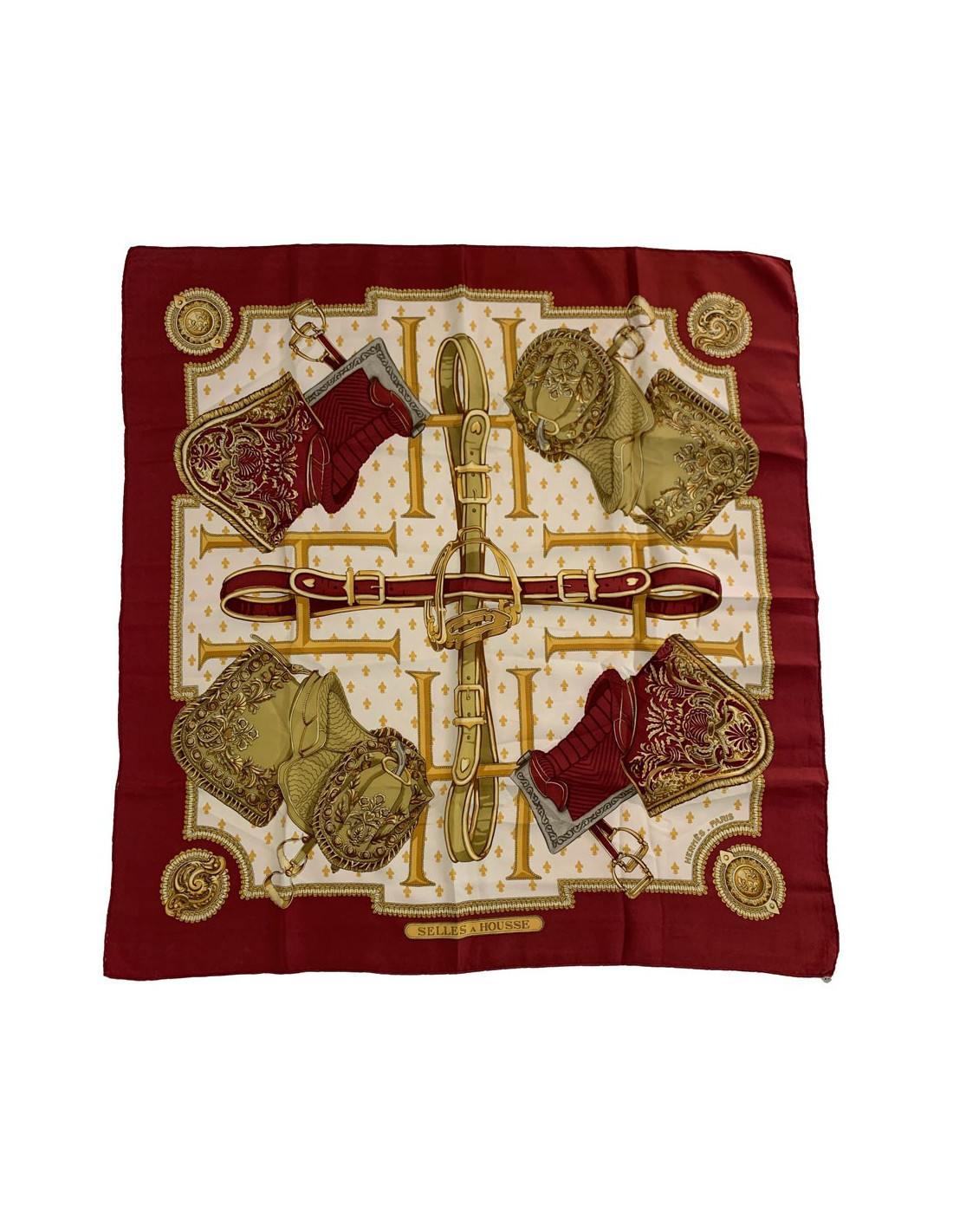 Carré HERMES 90 x 90 soie 100 % "Selles a housse"