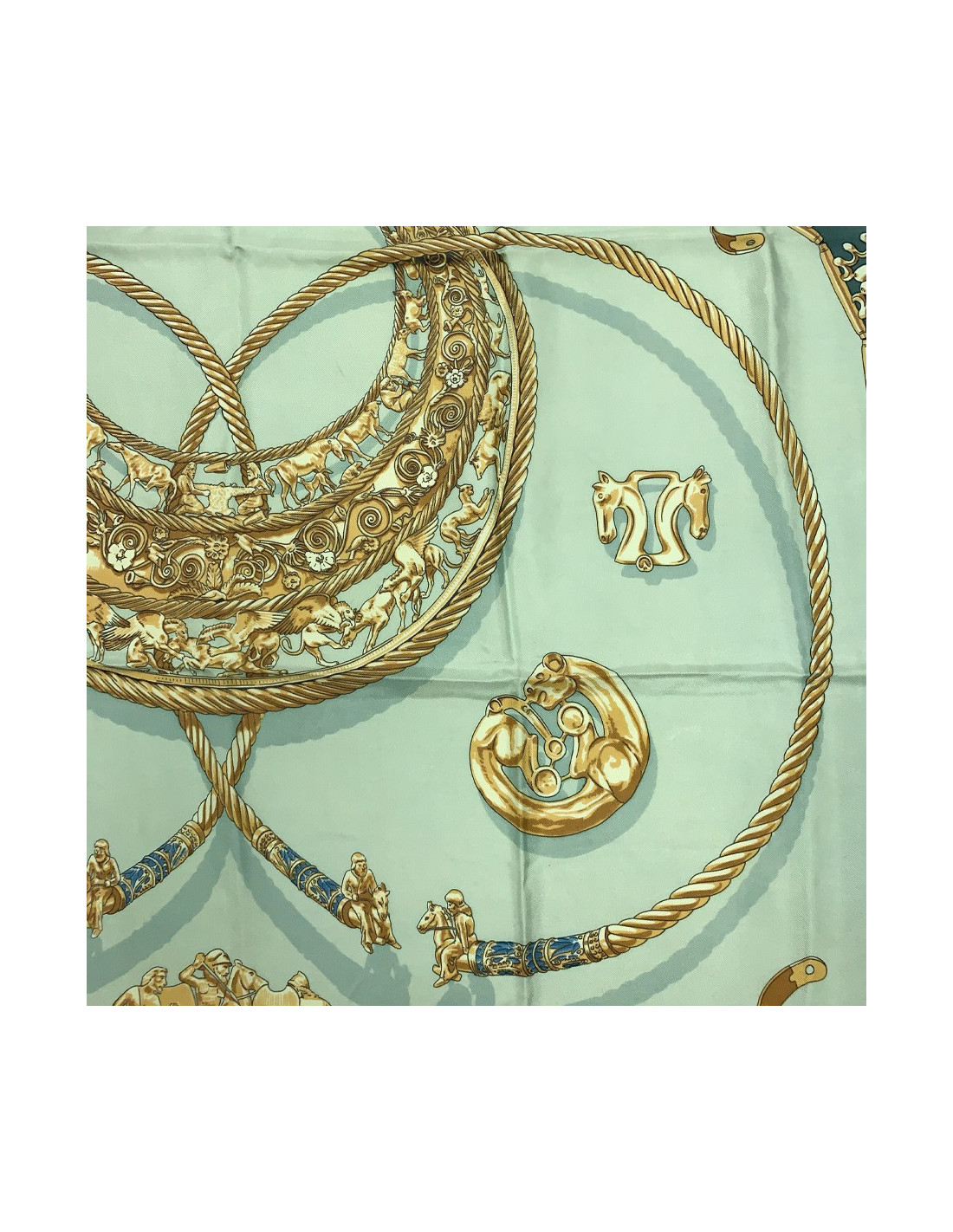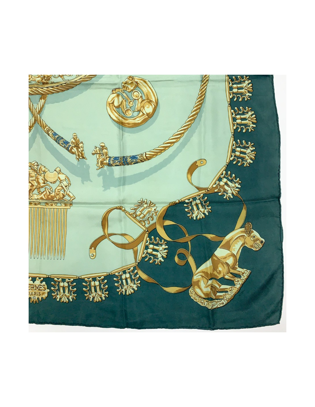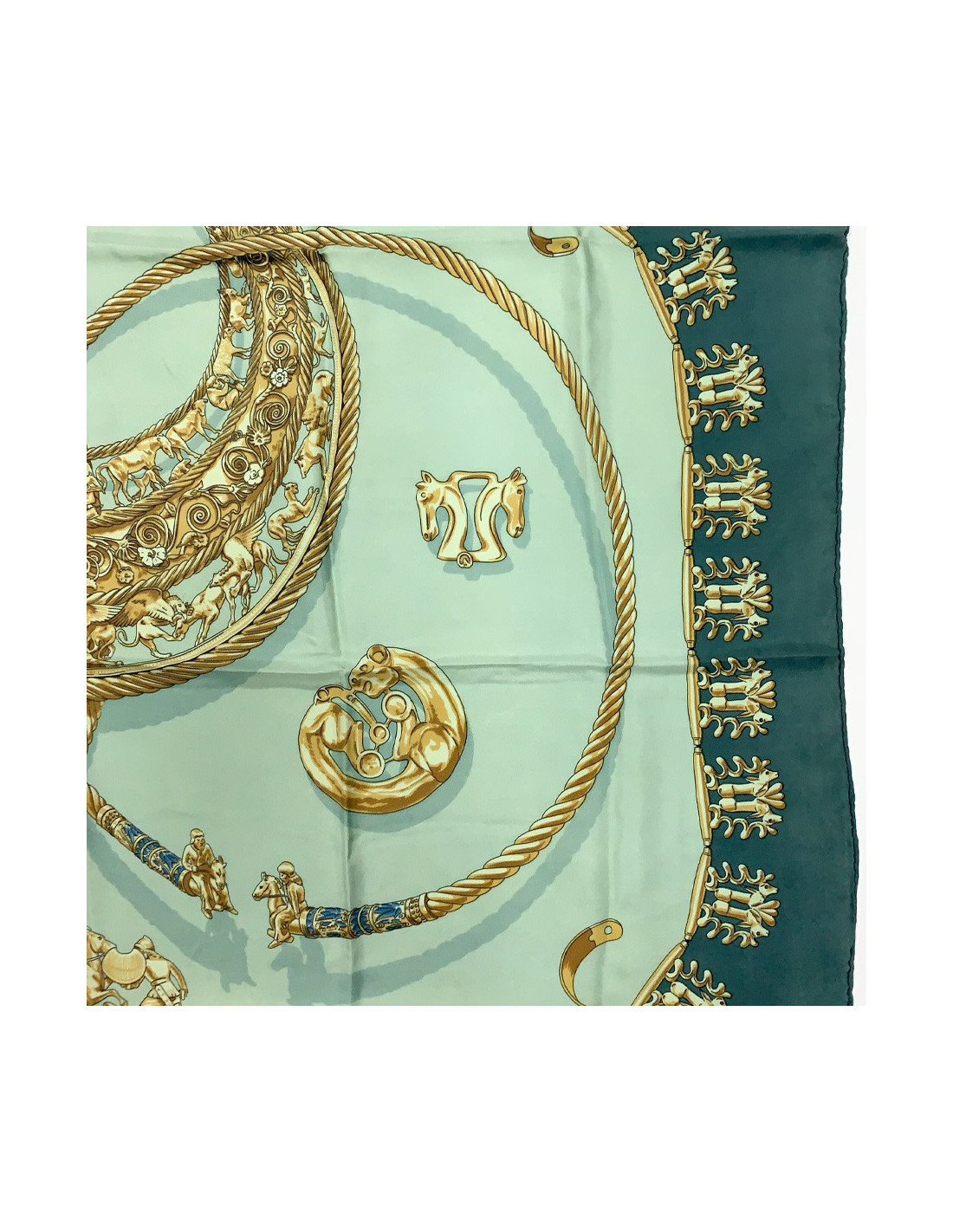 Last items in stock SCARVES AND SHAWLS CELINE sly blue silk scarf CELINE 17056 95.00 € CELINE sly blue silk scarf Condition: very good ( one tiny pulled thread)Material: silk muslinColors: sly blue, greenMeasurements: 84x85cmDetails: CELINE light-blue silk muslin scarf with round stone motifs in shades of green and blue. Delivered in a Valois Vintage Paris dustbag Add to cart