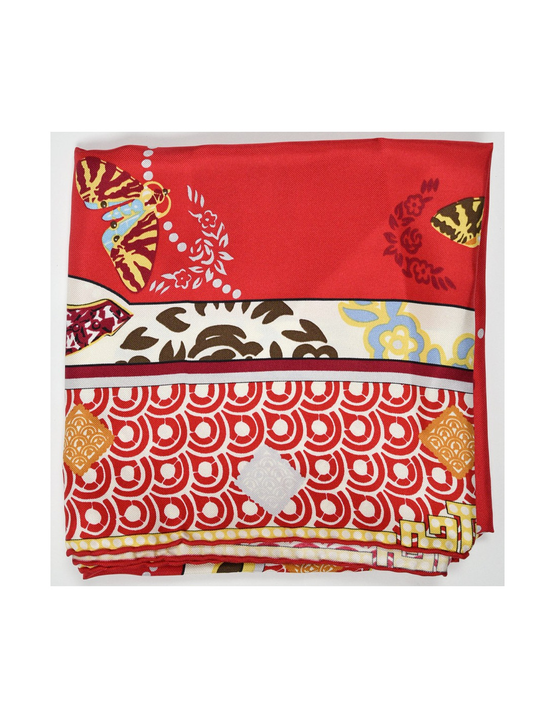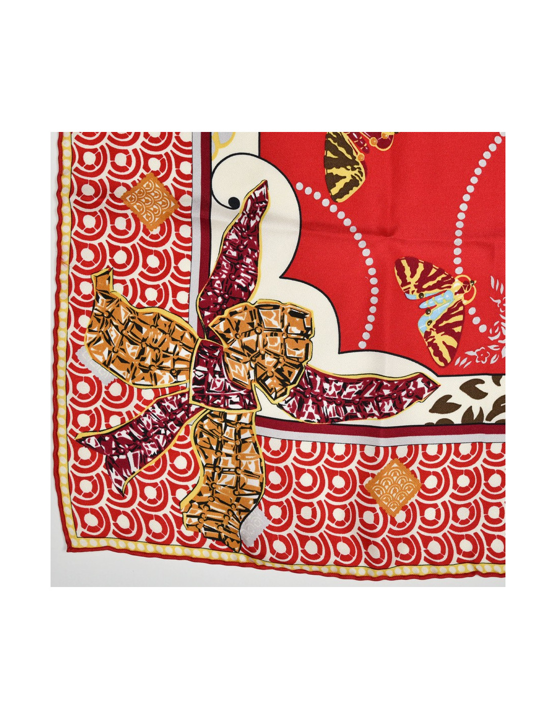 Last items in stock SCARVES AND SHAWLS HERMES 'Psyché' multicolor silk large square scarf HERMES 17238 700.00 € HERMES 'Psyché' multicolor silk large square scarf Made in FranceCondition: excellentMaterial: silkColors: ochre, orange, fuchsia, brownMeasurements: 134x132cmDesigner: Sophie Koechlin Details: the rolled hem is in impeccable condition Delivered in a Valois Vintage Paris dustbag Add to cart