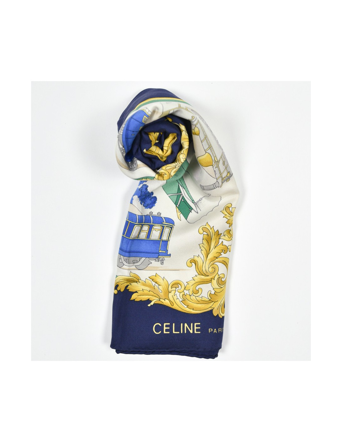 Last items in stock SCARVES AND SHAWLS CELINE sly blue silk scarf CELINE 17056 95.00 € CELINE sly blue silk scarf Condition: very good ( one tiny pulled thread)Material: silk muslinColors: sly blue, greenMeasurements: 84x85cmDetails: CELINE light-blue silk muslin scarf with round stone motifs in shades of green and blue. Delivered in a Valois Vintage Paris dustbag Add to cart