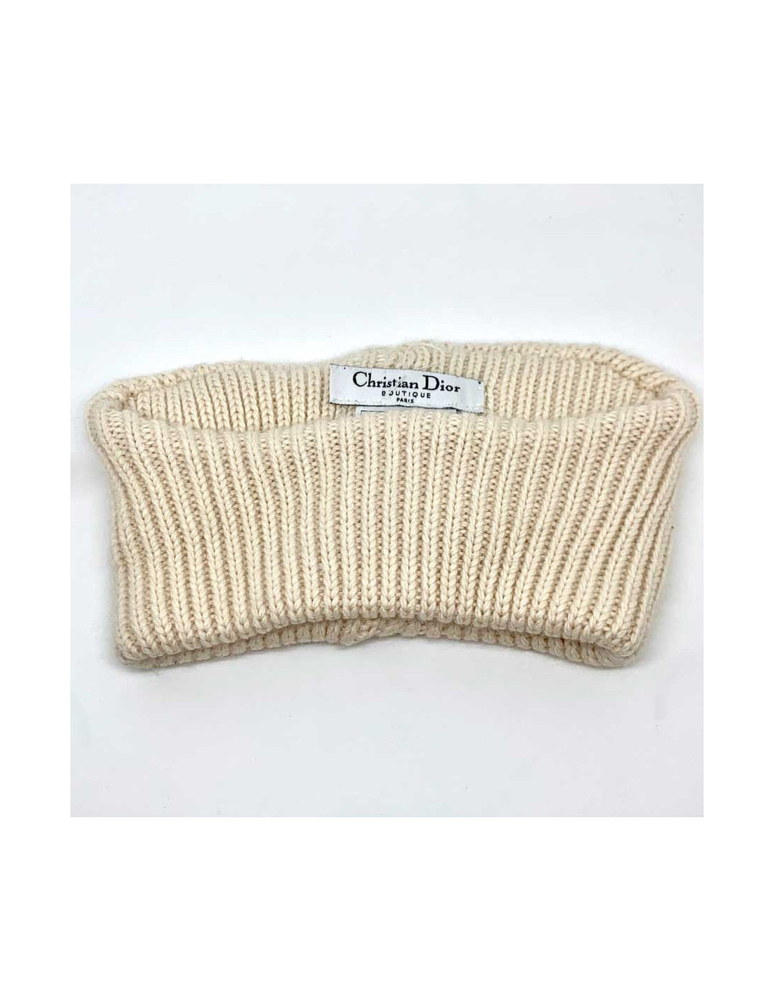 The neck warmer is in perfect, never worn condition. The inner label of the CHRISTIAN DIOR BOUTIQUE PARIS brand is however untucked on one side but still present. The neck gaiter measures 52 centimeters with a height of 14 centimeters. The material label is present, along with the words Made In France.