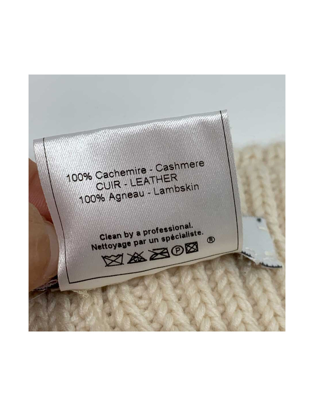 Materials: 100% cashmere, lambskin leather